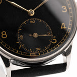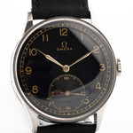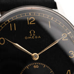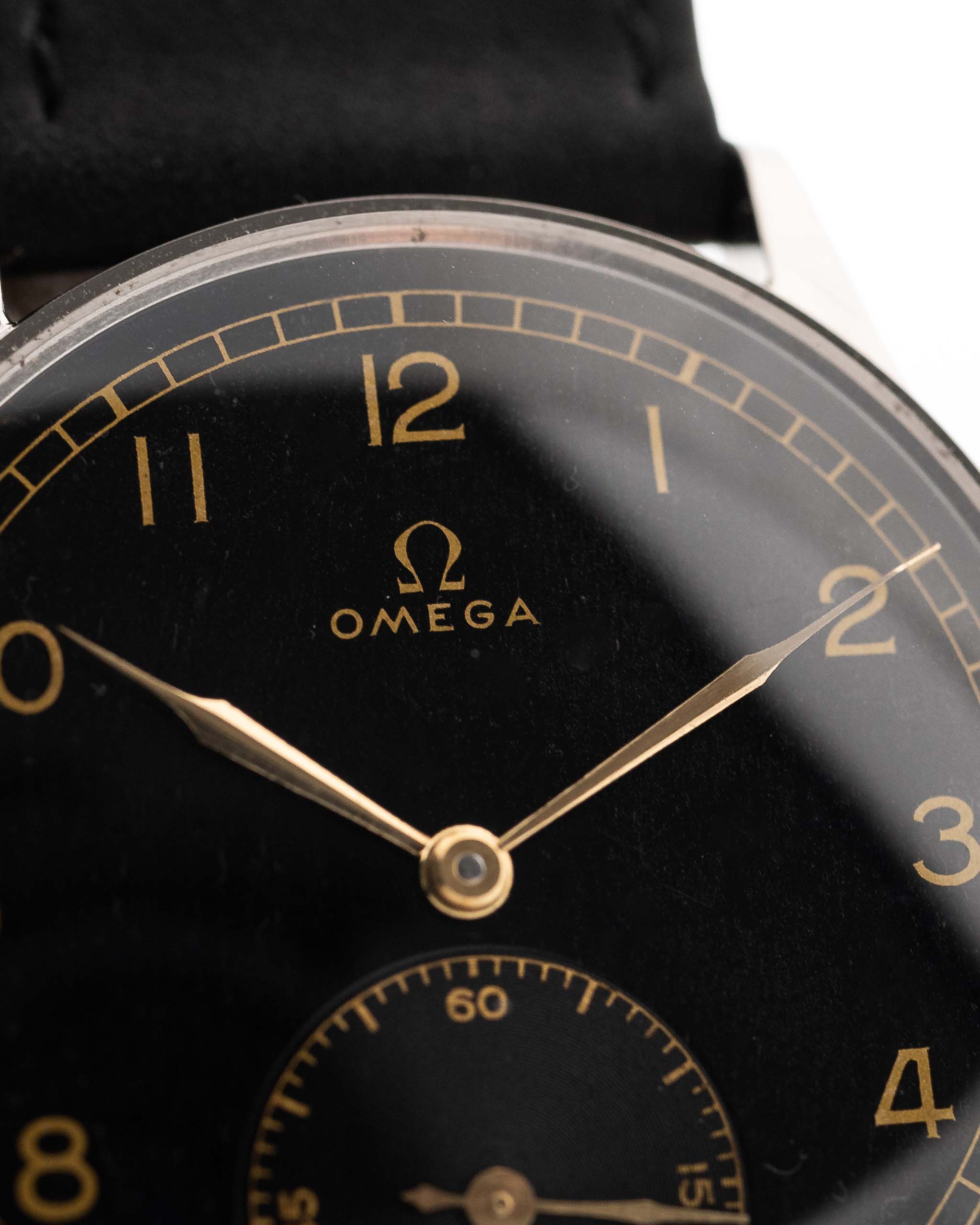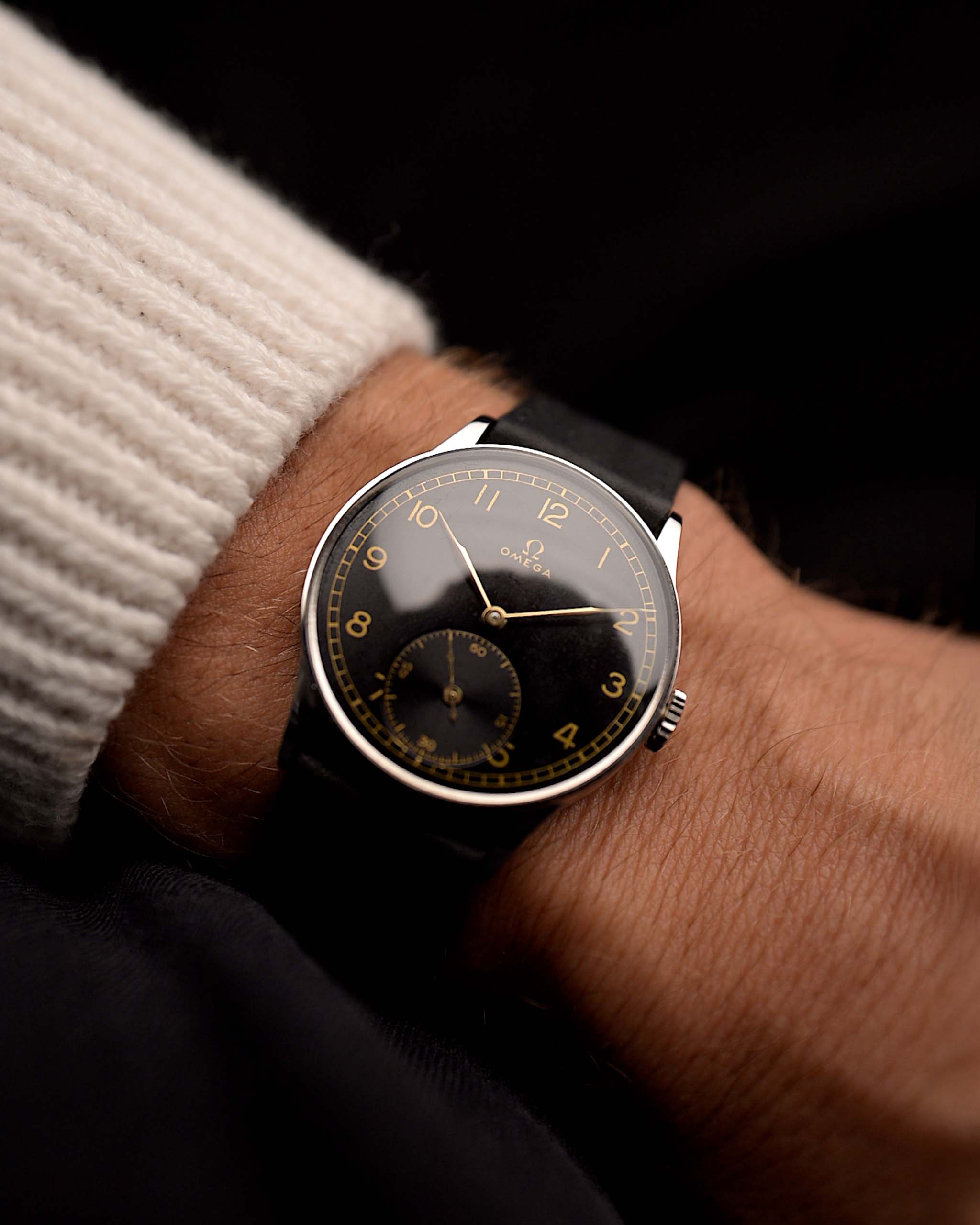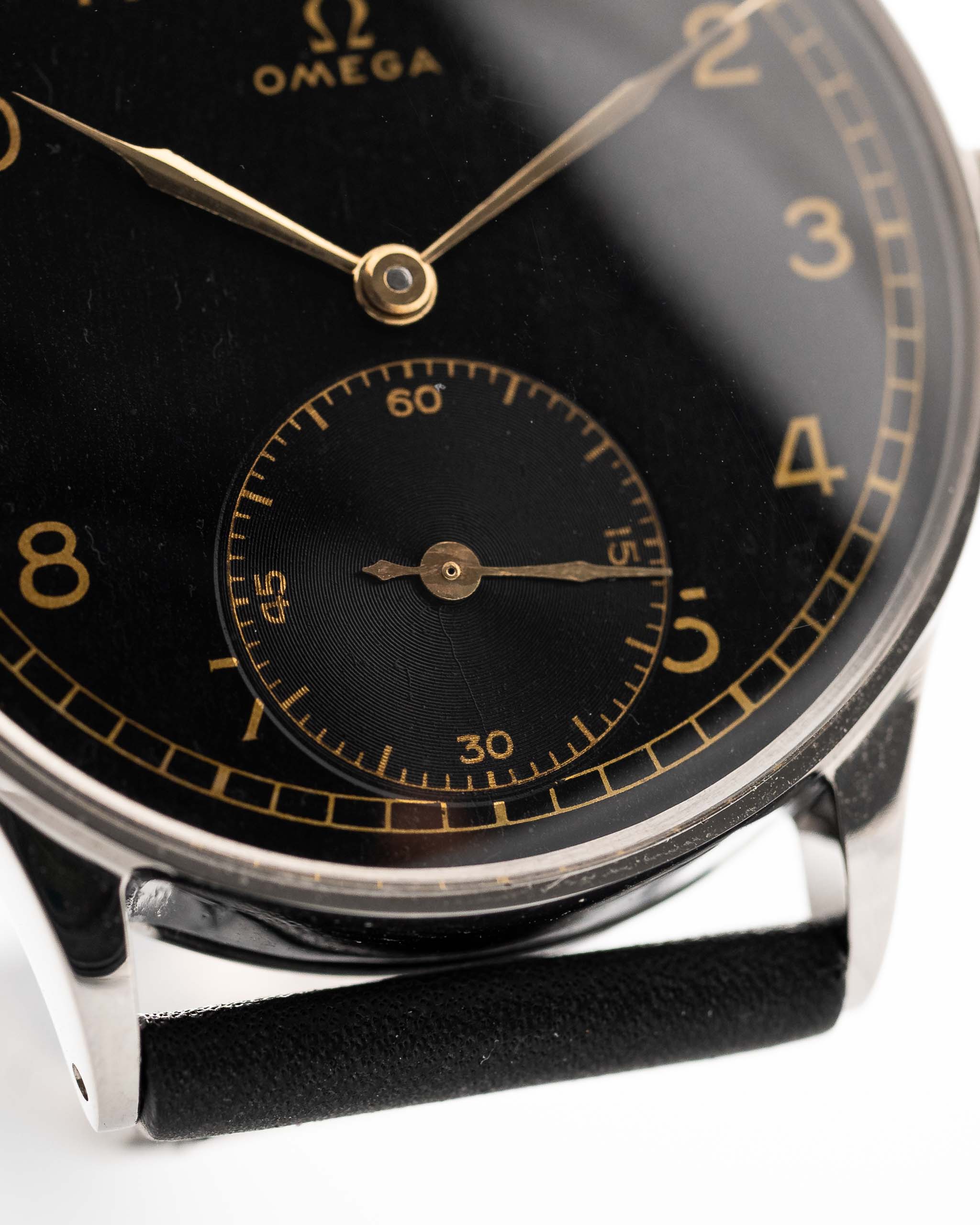 要找到一枚狀態良好的 1940 年代歐米茄腕錶並不容易,但要找到一枚擁有美麗的啞光黑色錶盤、裝飾藝術數字以及相配的金色針筒指針的腕錶,則是一項相當大的挑戰。