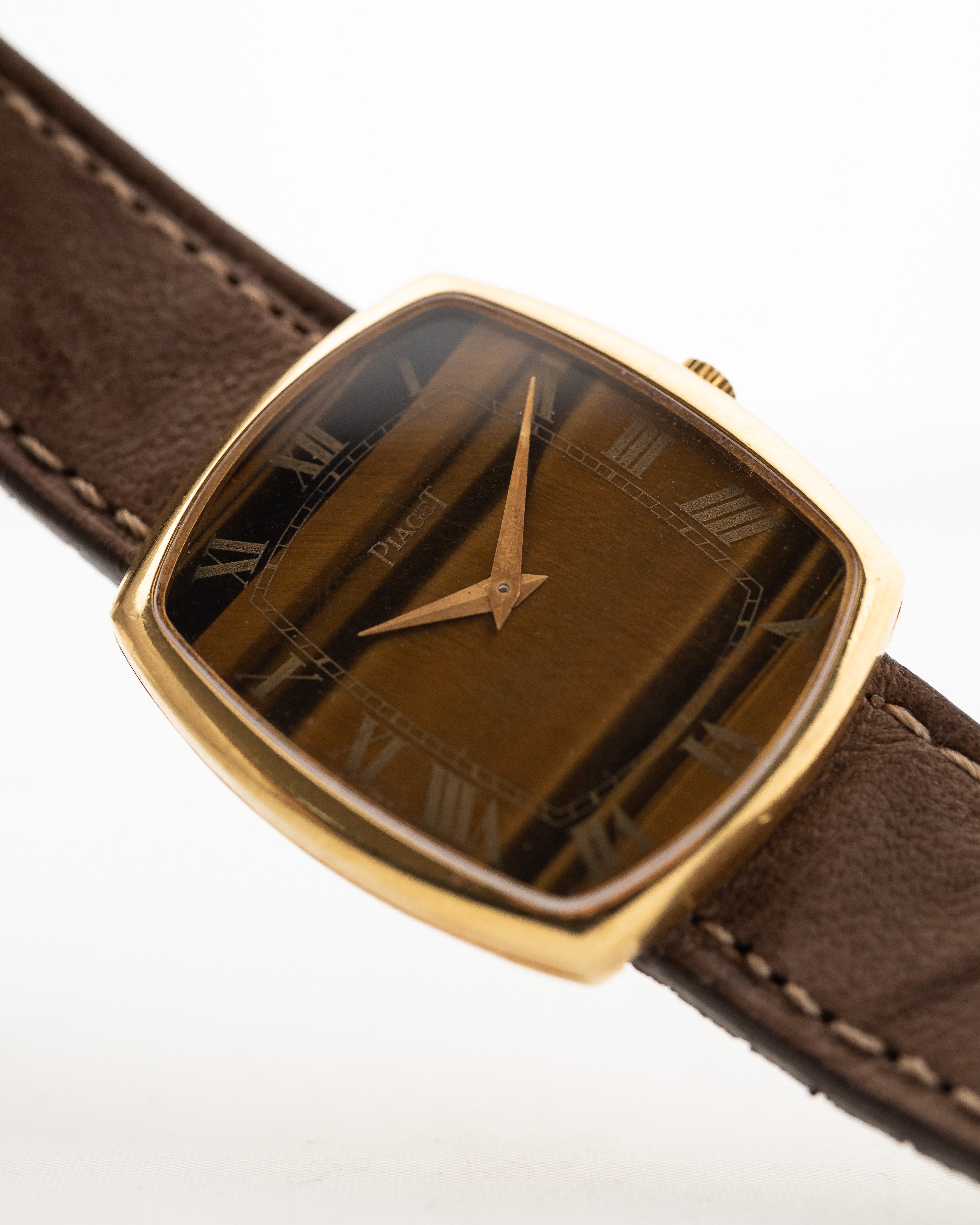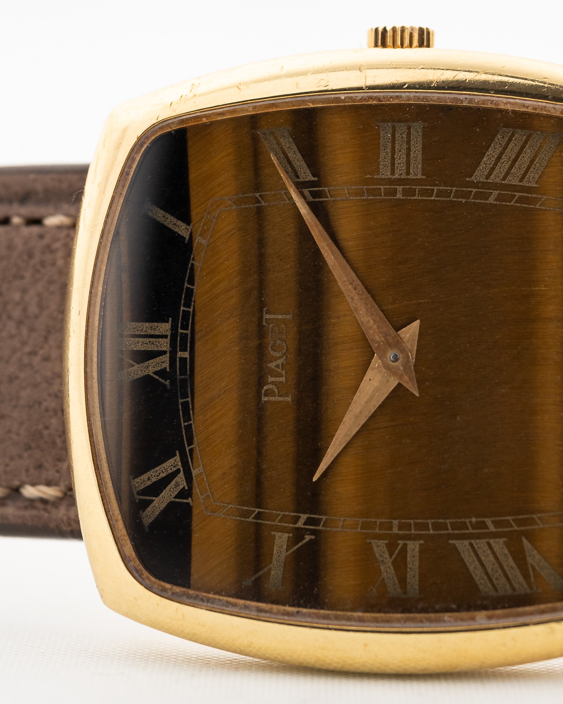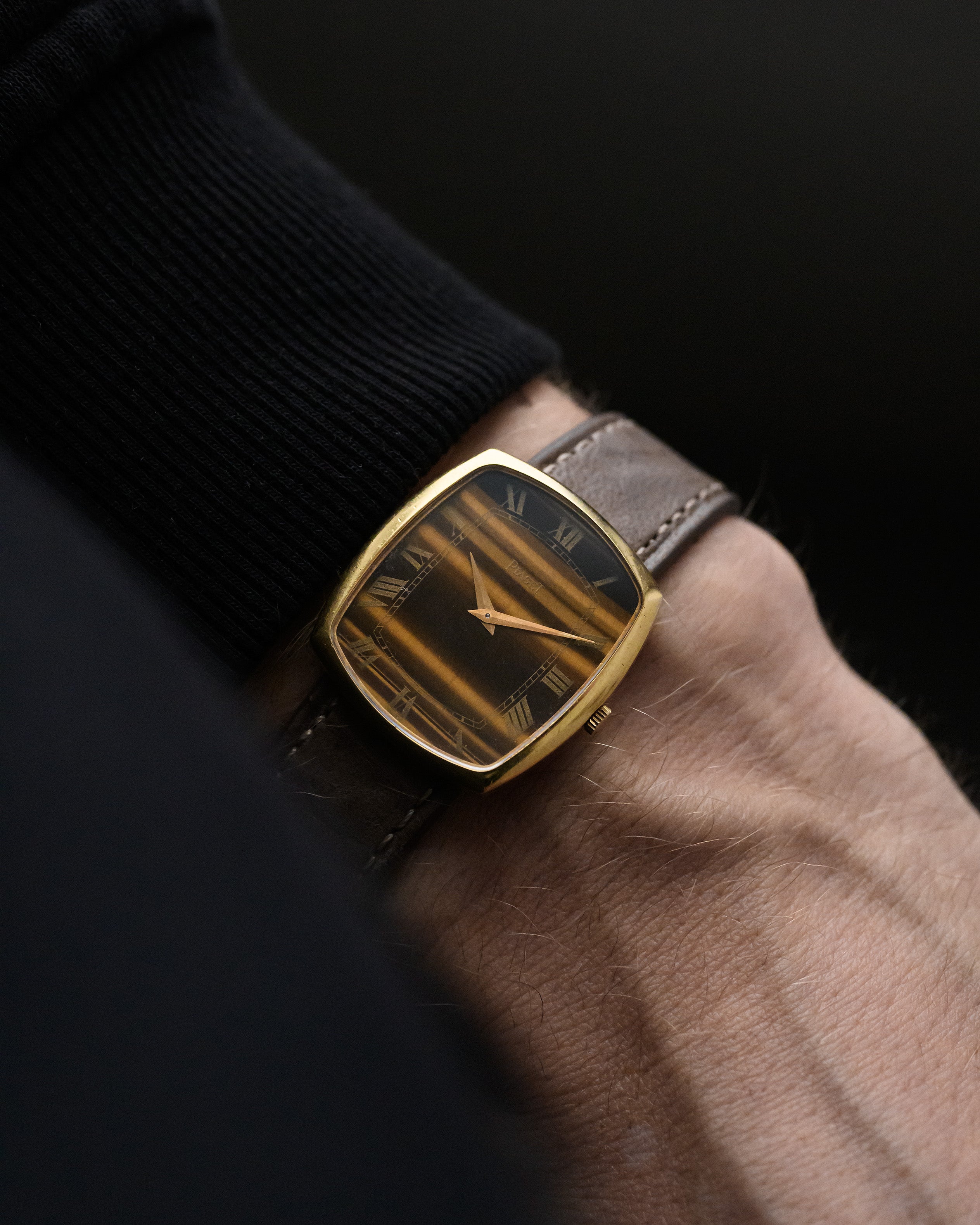 它的纖薄不僅是技術上的成就,也使製錶廠能夠在保留纖薄外形的同時,裝配以堅硬寶石製成的錶盤,就像這款完美無暇的18K伯爵腕錶,配上美麗的老虎石錶盤。