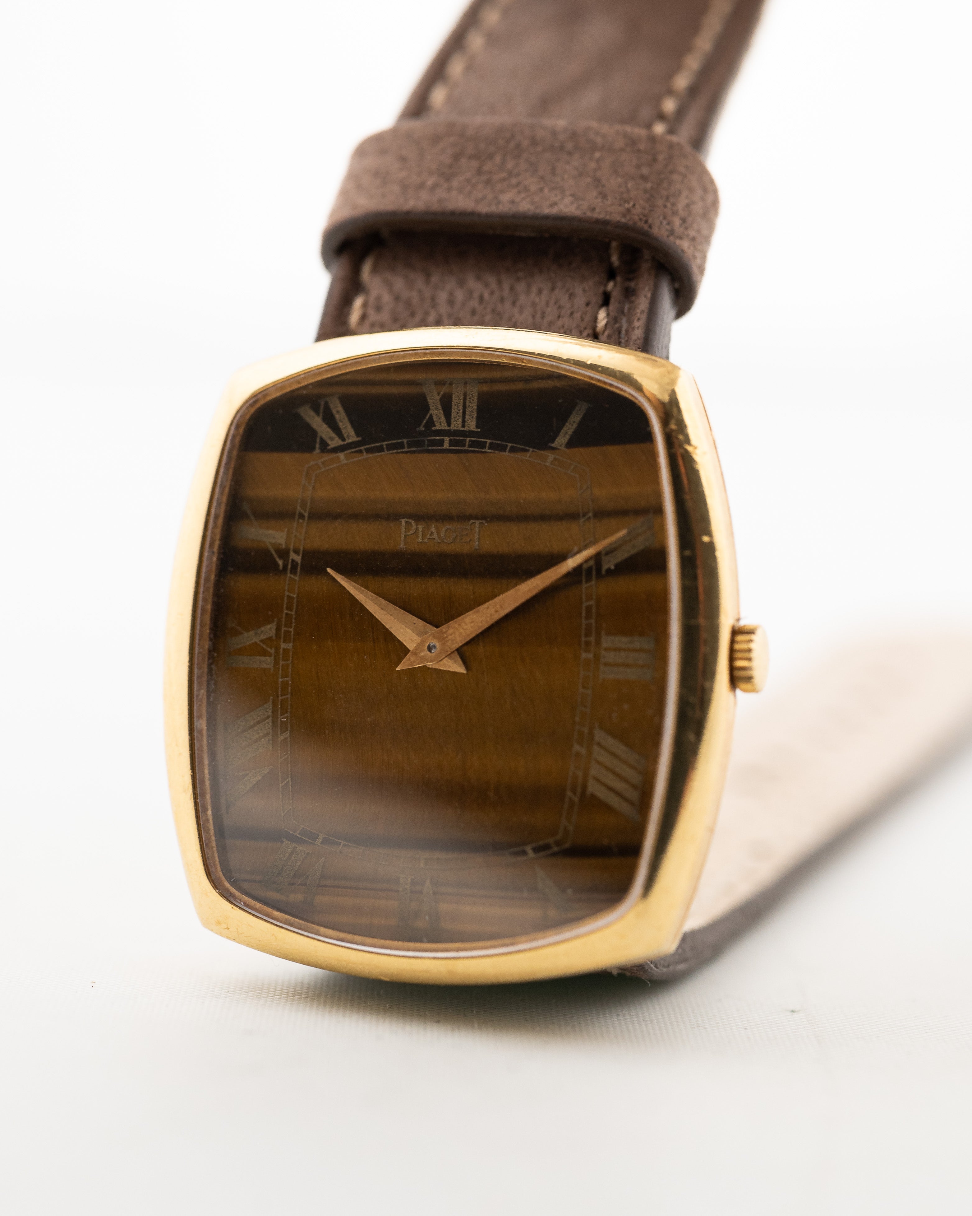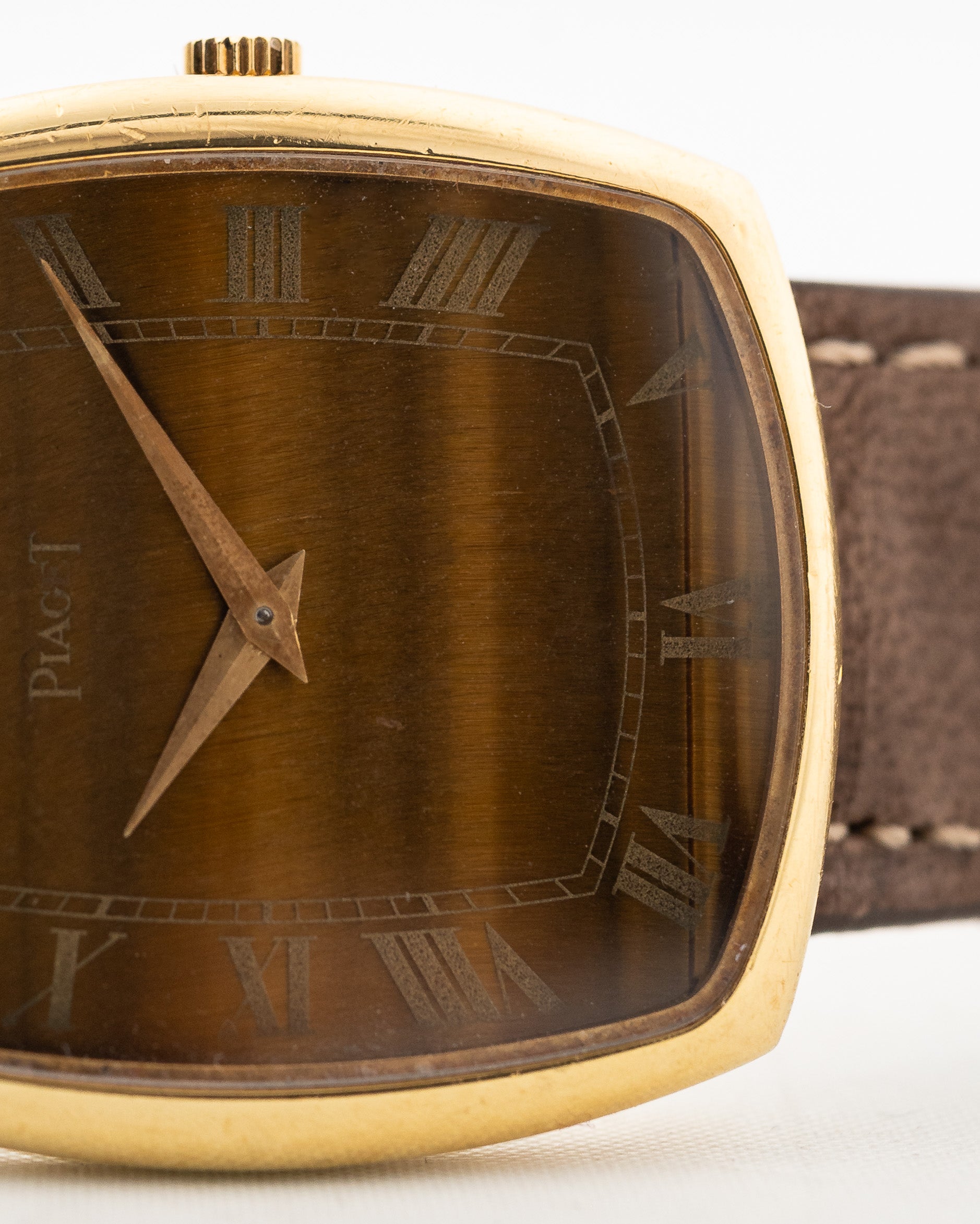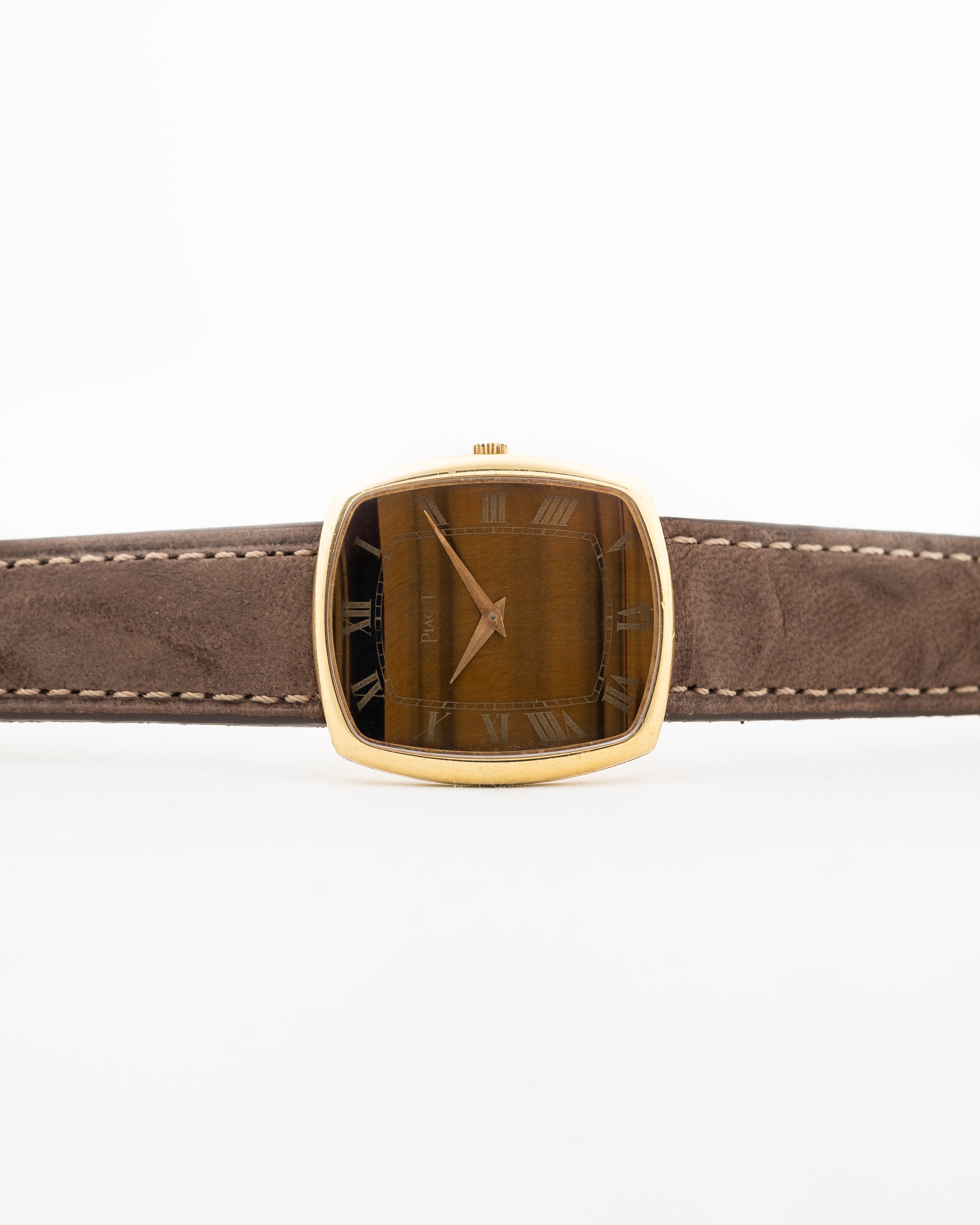 它的纖薄不僅是技術上的成就,也使製錶廠能夠在保留纖薄外形的同時,裝配以堅硬寶石製成的錶盤,就像這款完美無暇的18K伯爵腕錶,配上美麗的老虎石錶盤。