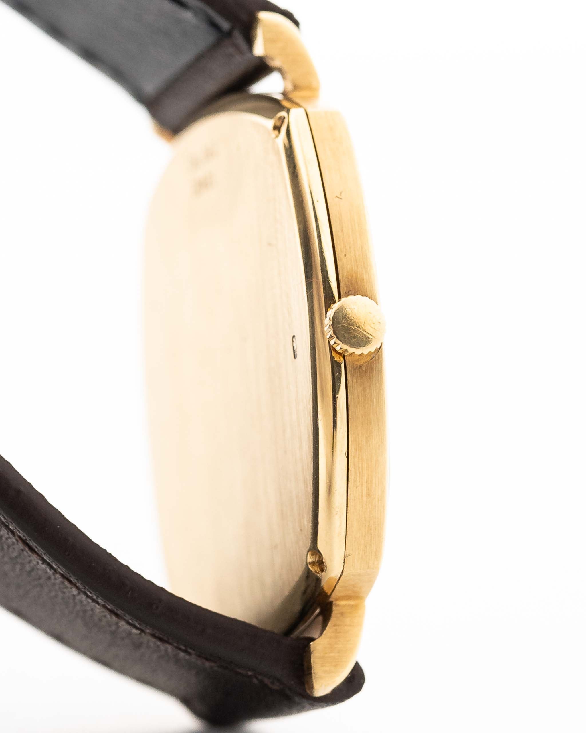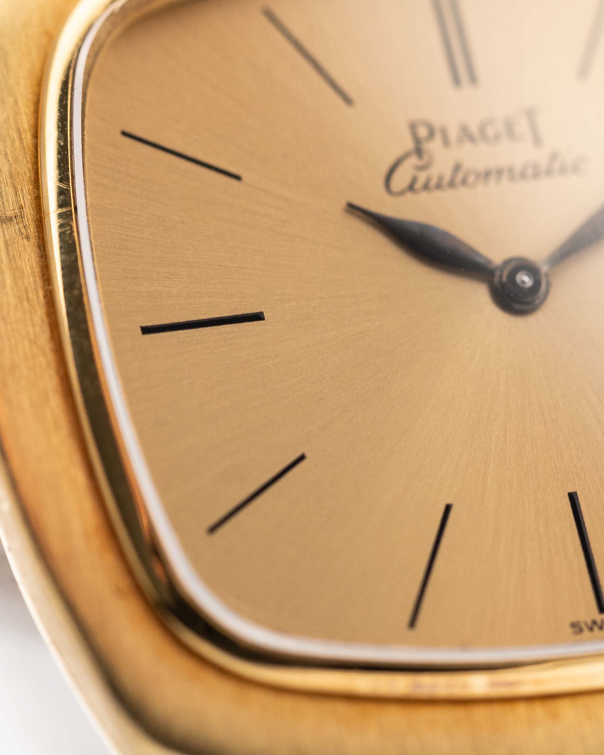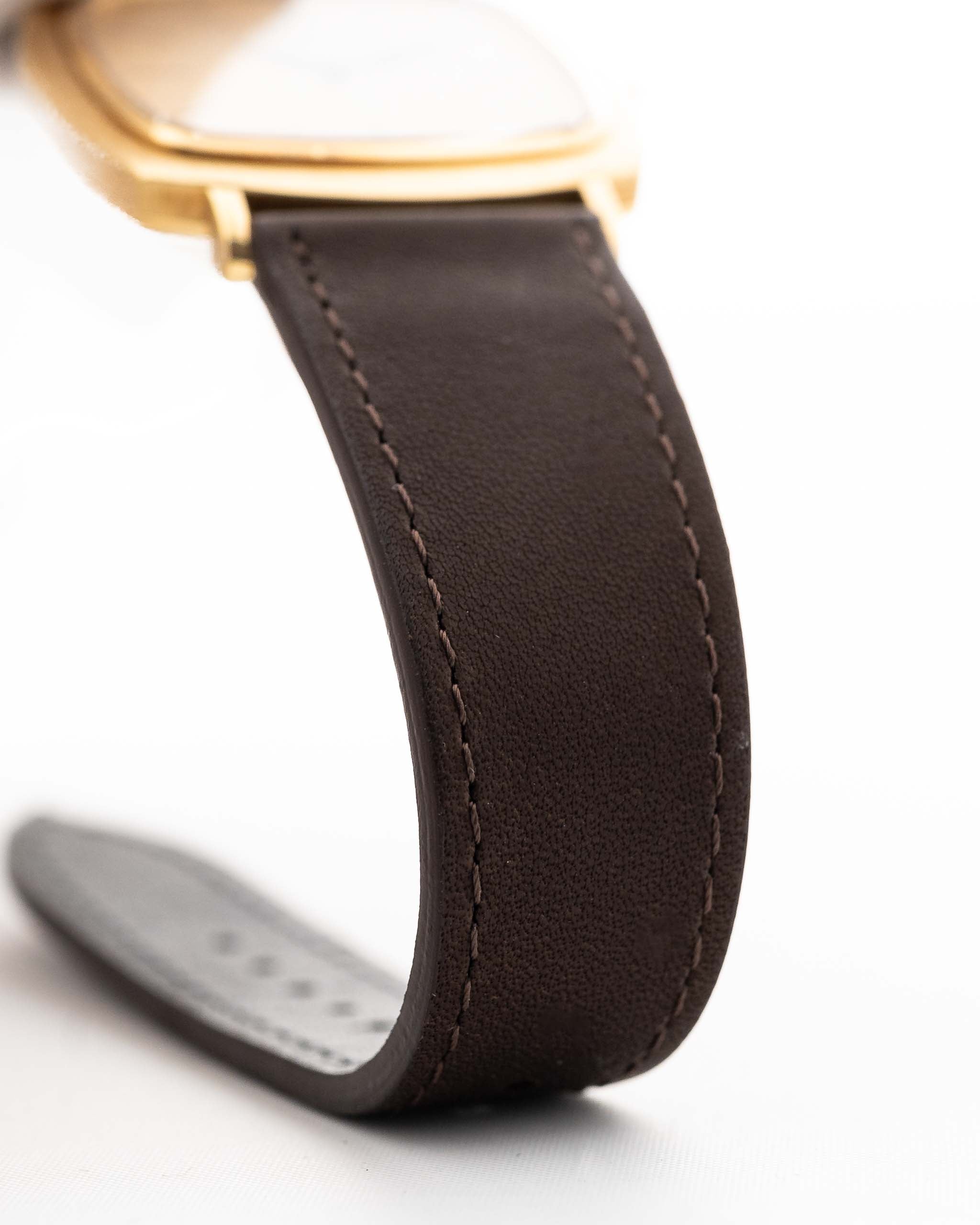 Vintage Piaget TV 12432 Automatic Watch 18K 來自 1970 年代。32.5 毫米,18K 黃金錶殼、12P1 自動機芯,金色錶盤、葉形指針和皮革錶帶。