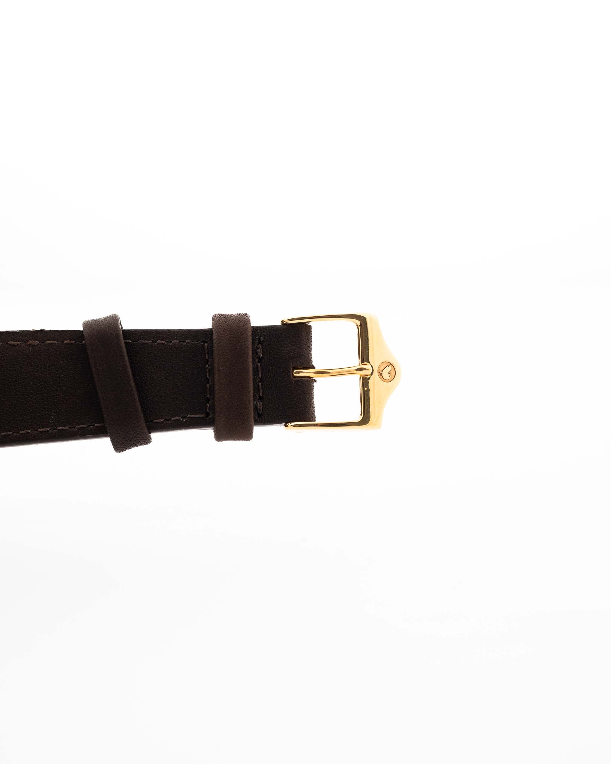 來自 1970 年代的 Vintage Piaget TV 12432 Automatic Watch 18k 腕錶。32.5mm 配備 18K 黃金錶殼、12P1 自動機芯,金色錶盤、葉形指針和皮革錶帶。