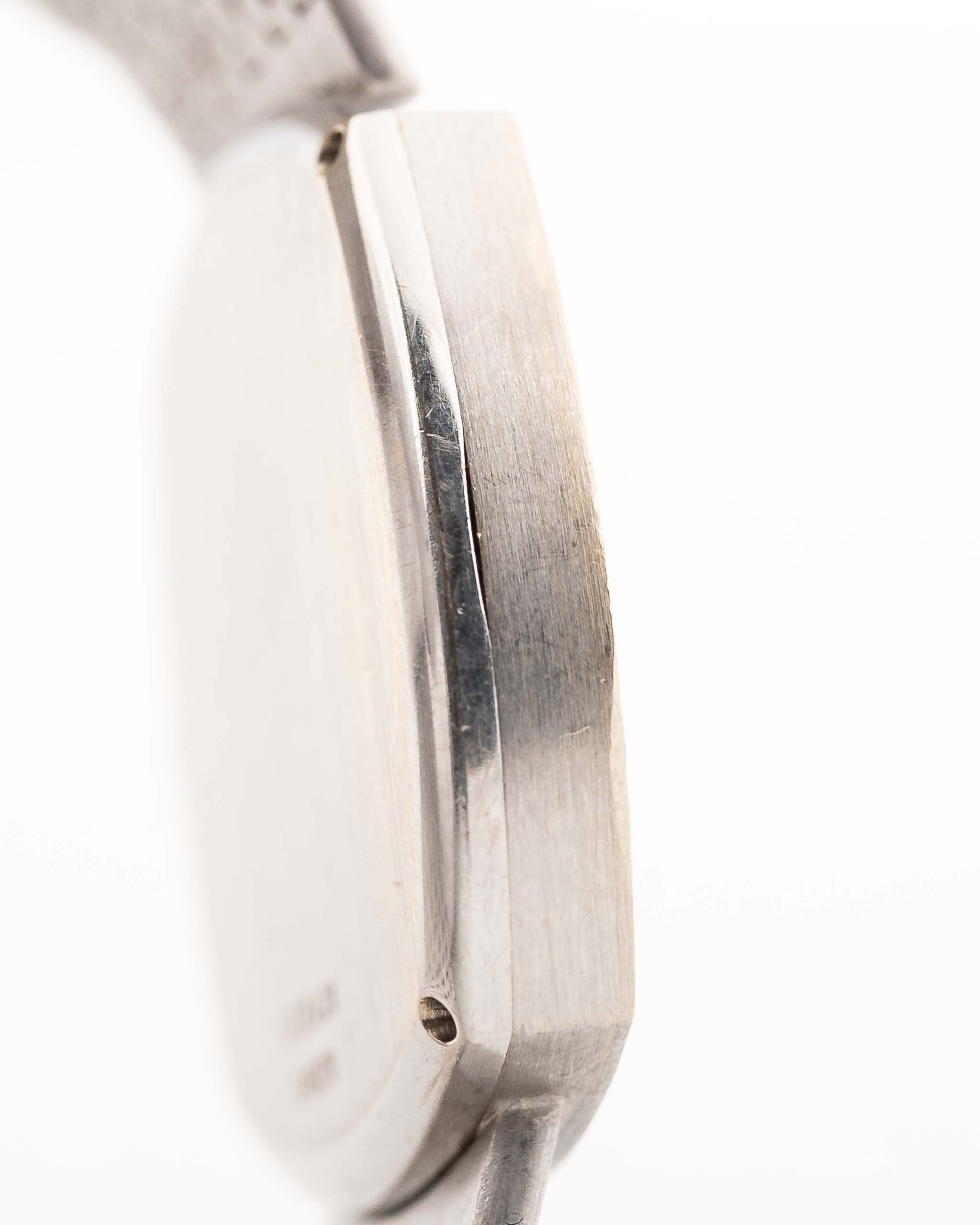 這枚非凡的伯爵 TV 12735腕錶來自 1970 年代,展現出令人驚嘆的藝術幾何與稀有材質。其獨特的18K白金 TV形錶殼搭配工廠鑲鑽錶圈,46顆明亮式切割鑽石將腕錶的奢華氣派提升至全新境界。