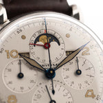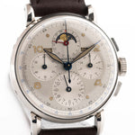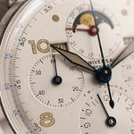 它擁有美麗的不銹鋼錶殼、造型獨特的蜘蛛形錶耳以及令人愛不釋手的錶盤佈局。更令人驚喜的是,這款腕錶的月相、錶背保護漆和通用日內瓦錶盒均為原裝 NOS 狀態。