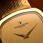Vintage Vacheron Constantin Watch 2099 Cushion 18K Gold from the 1970.狀態極佳,30 毫米 18K 黃金錶殼,1002 機芯,垂直拉絲金錶盤和黃金錶鏈 .