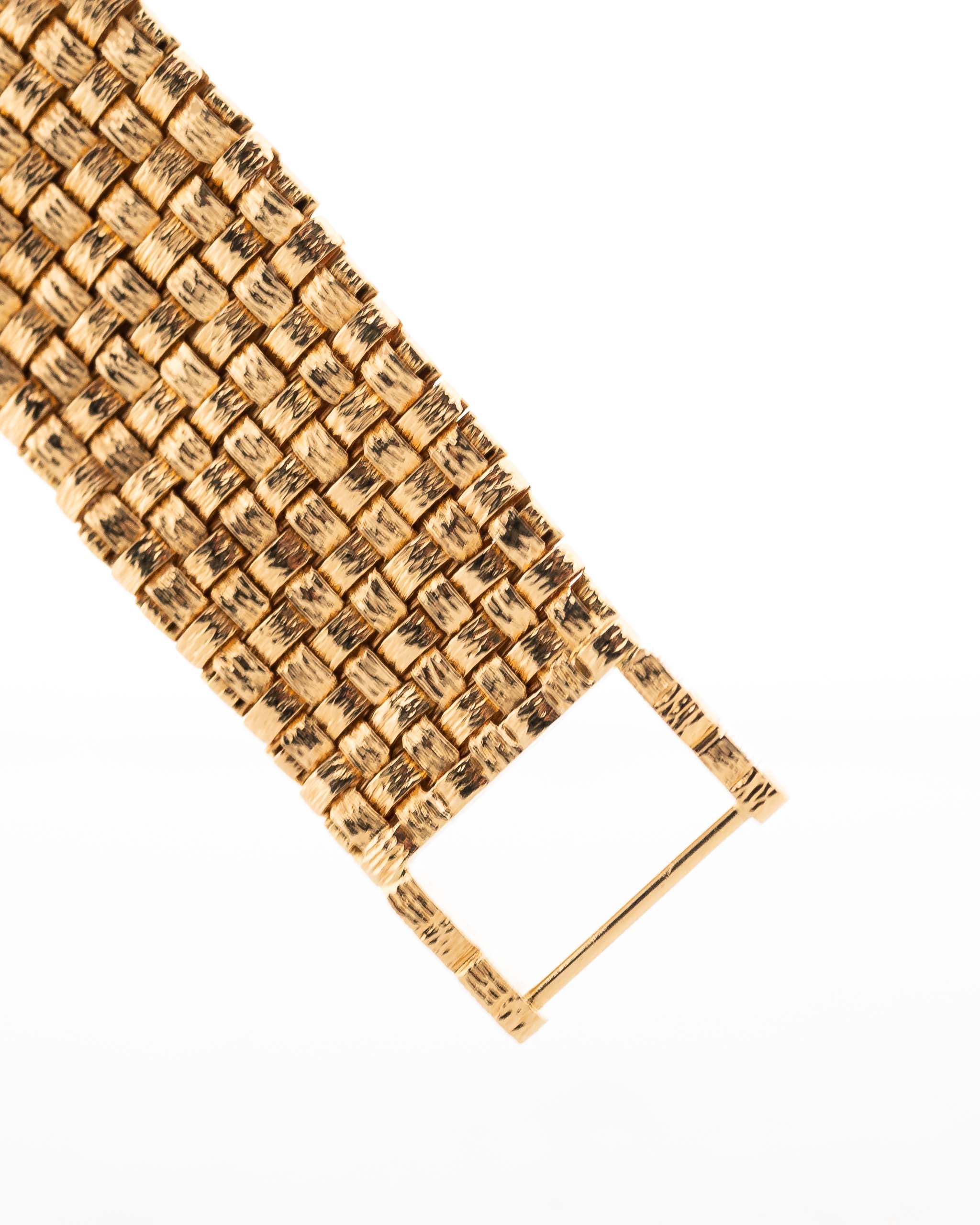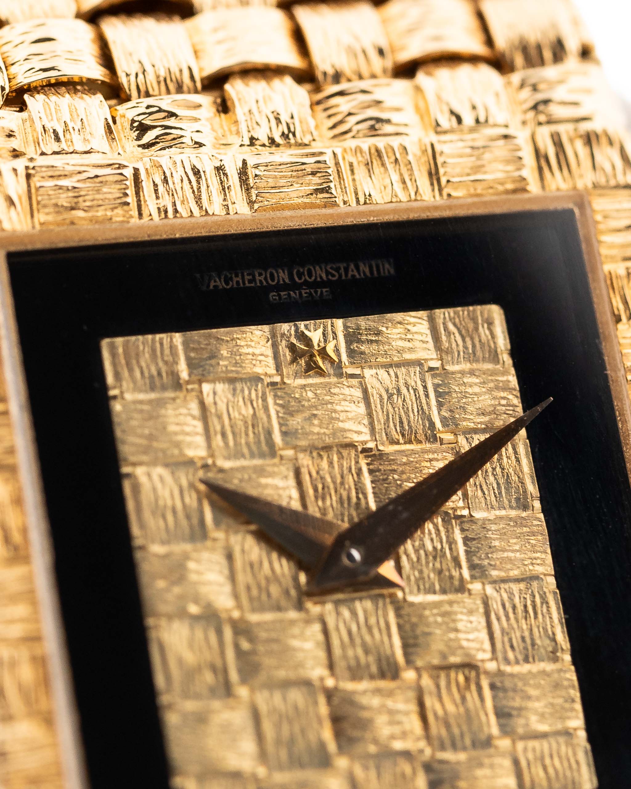 整合式 18K 黃金編織籃形錶鏈搭配相襯的錶殼和錶盤設計,使這款江詩丹頓腕錶如此獨一無二。18K 黃金錶盤配備縞瑪瑙外框、麥芽十字標誌、VC 文字和字母指針。搭配超柔軟的織繩錶帶,腕錶宛如第二層肌膚。