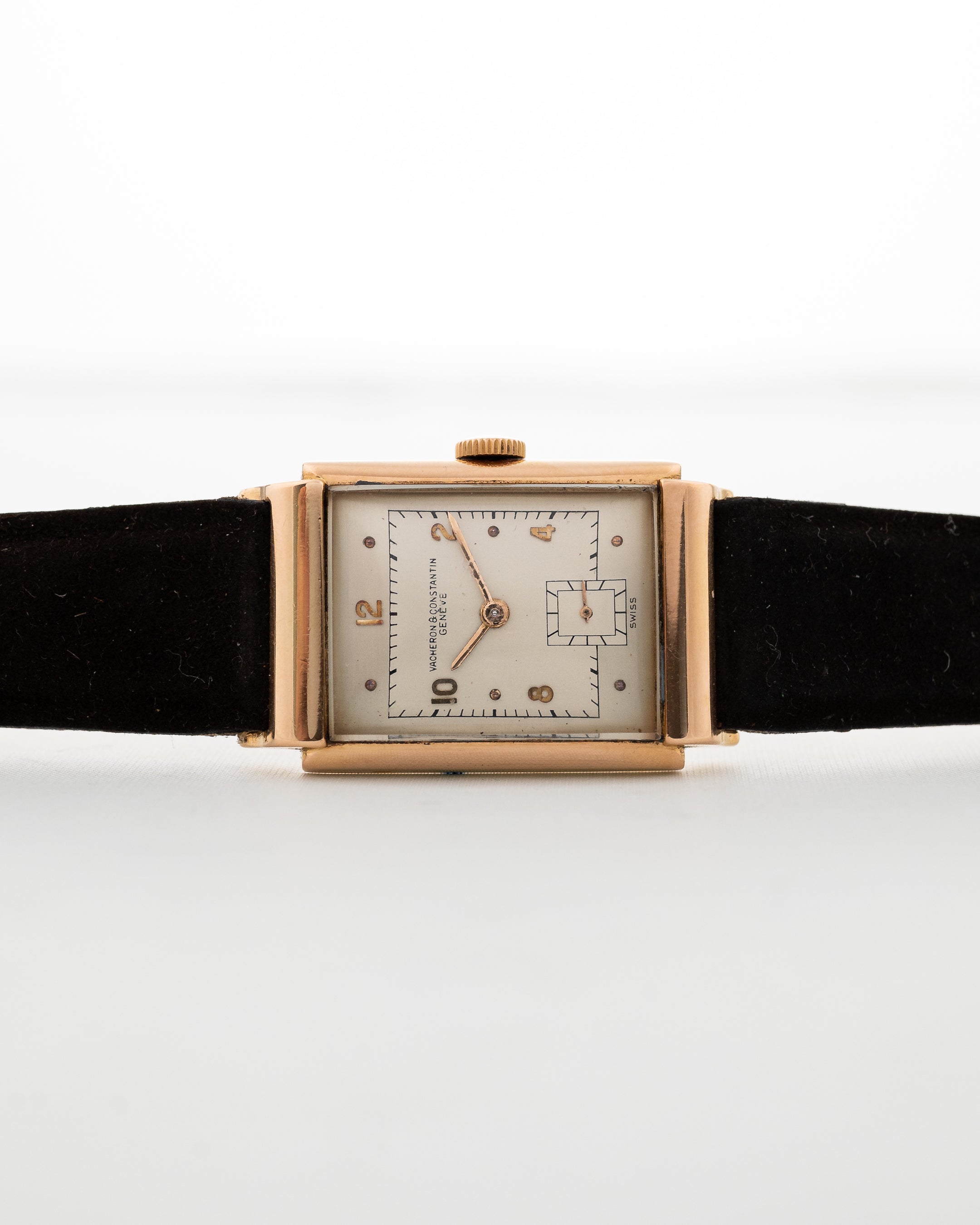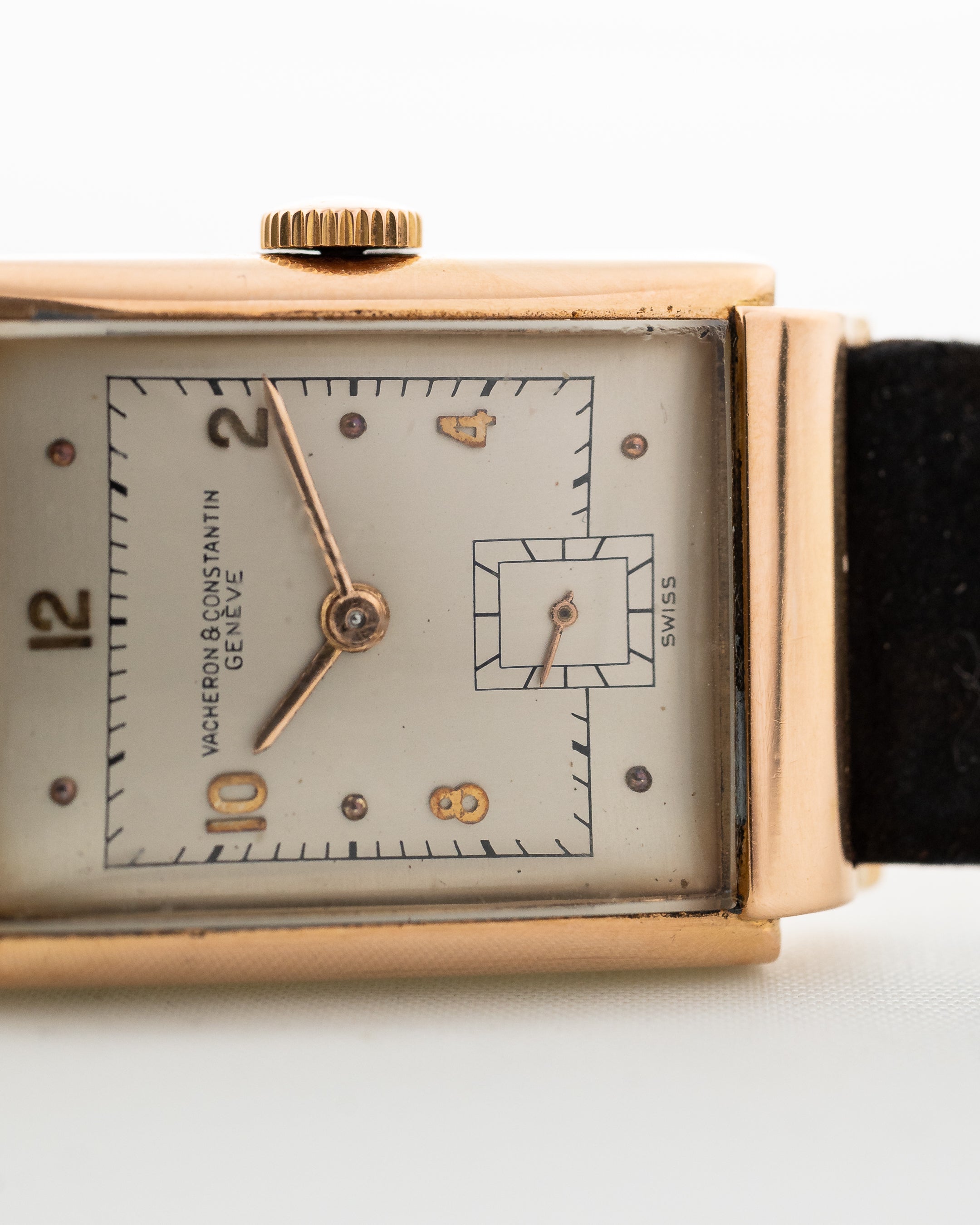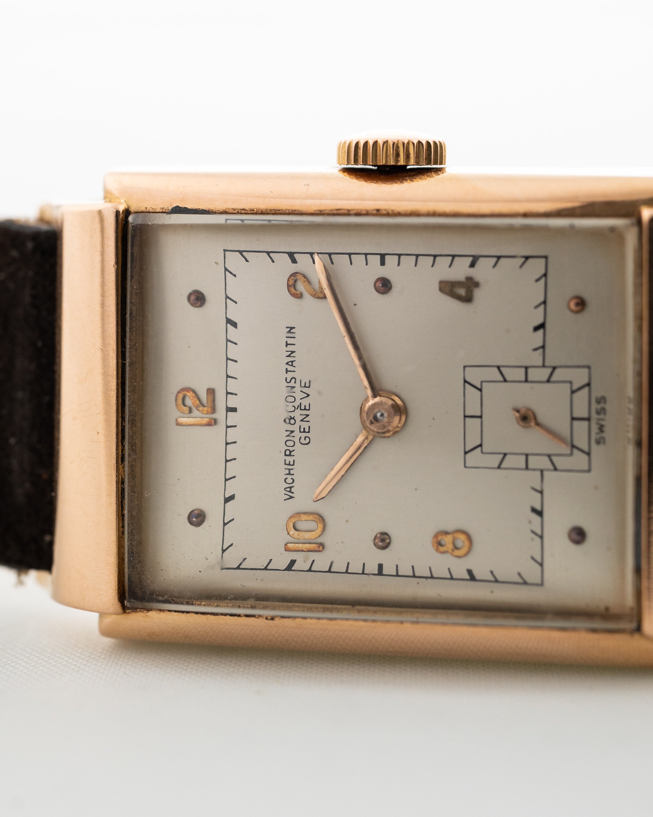 這款江詩丹頓長方形禮服腕錶來自 1944 年,做工精美,錶盤設計驚人,細節之多,難以一一盡錄。