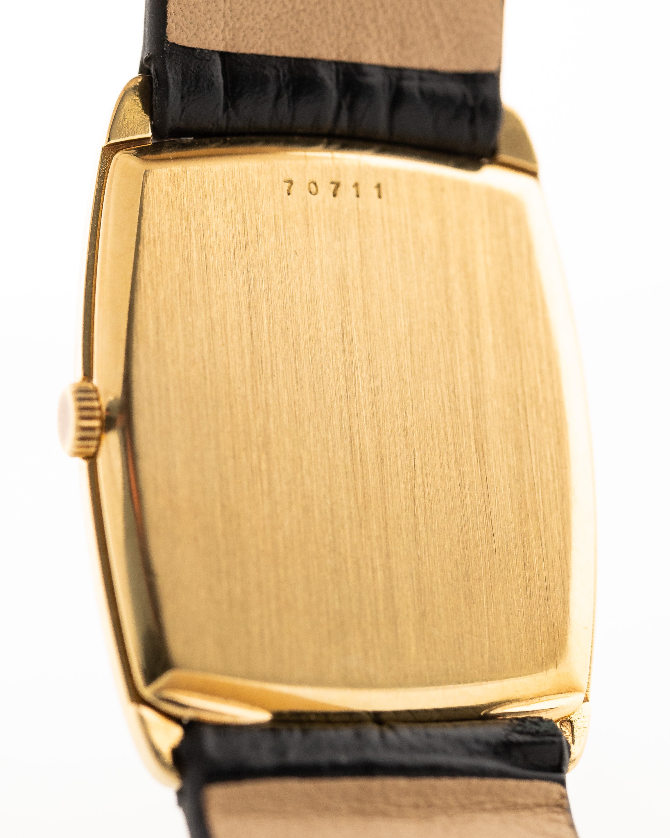 這款 Audemars Piguet 長方形正裝腕錶搭配簡潔的黑色錶盤,是 1970 年代的傑作。現在您有機會買到的不是皇家橡樹,而是愛彼真正精緻優雅的作品。