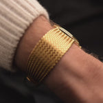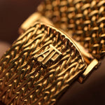 18K 黃金編織表帶為整款腕錶畫上完美句點,流暢而富建築美感,讓這款腕錶猶如精緻的珠寶。