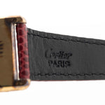 This reference 81006, from the Must de Cartier line, captures that legacy with vintage charm. Its 925 sterling silver case, plated in yellow gold (vermeil), houses a two-tone champagne dial with elegant Roman numerals and blued sword hands — a combination that evokes classic Parisian sophistication. The red Cartier leather strap adds a bold yet refined finishing touch.