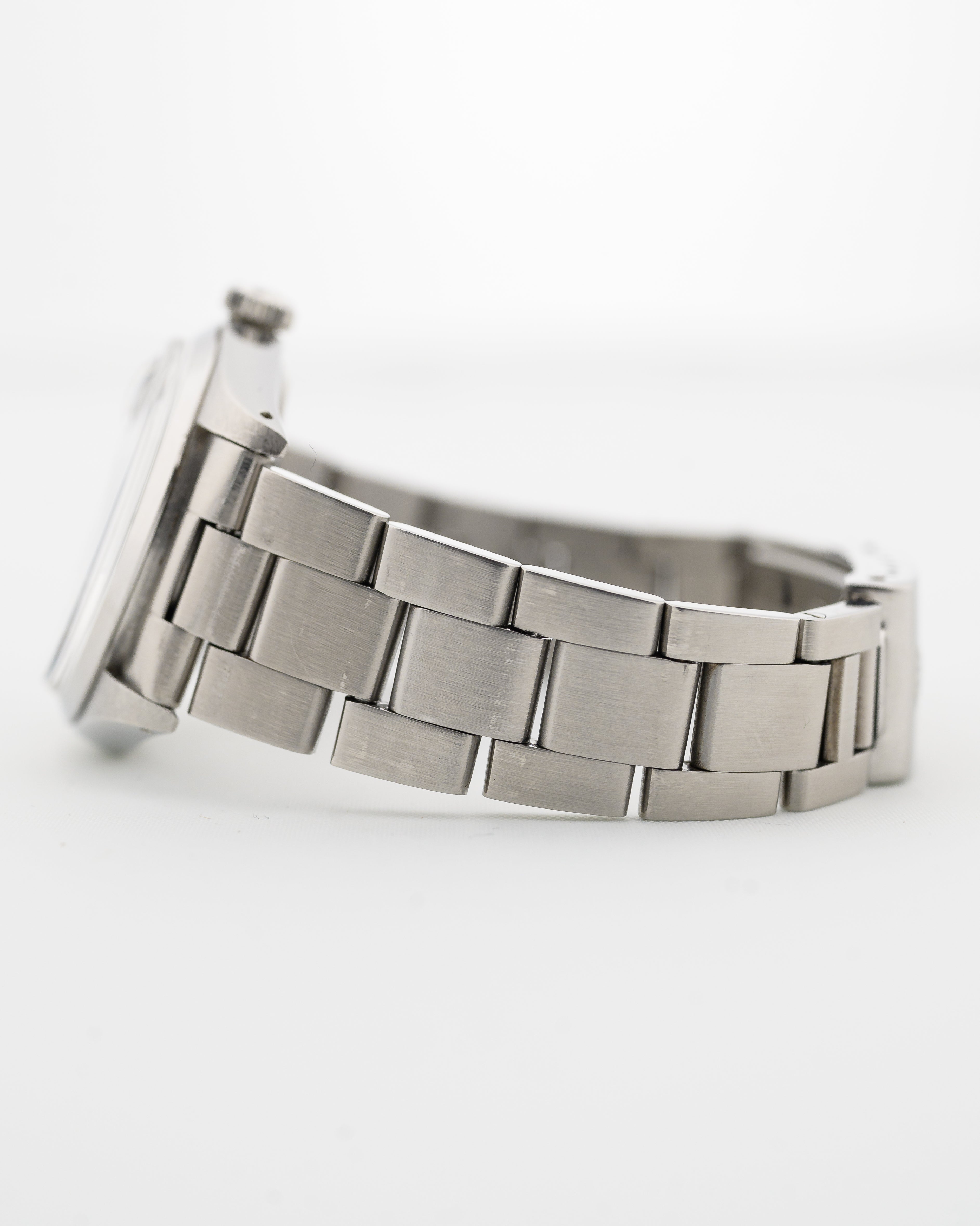 • 原廠 Rolex 不銹鋼蠔式錶帶 (A) 有輕微拉伸,最大適用於 19.5 公分的長度