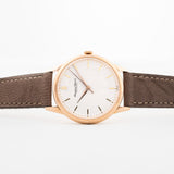 IWC萬國錶很早就生產各式各樣的腕錶,從正裝腕錶到航空腕錶一應俱全。這枚 18K 玫瑰金 calatrava 風格的腕錶擁有美麗簡潔的錶殼,是任何人收藏的常備款式,尤其是它的成色極佳。