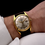 IWC 萬國錶很早就生產各式各樣的腕錶,從正裝腕錶到航空腕錶,應有盡有。這枚 18K 黃金錶殼的腕錶狀況極佳,並配備設計精美的白色/銀色太陽紋錶盤。 搭配簡單的棒狀時標,在任何人的收藏中都是永恆不變的經典。