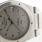 灰色圖形紙錶盤上的 IWC 經典簽名為這款 1980 年代的運動腕錶增添了一種瀟灑的成熟風格,最棒的是,這款腕錶的狀況幾乎接近 NOS。