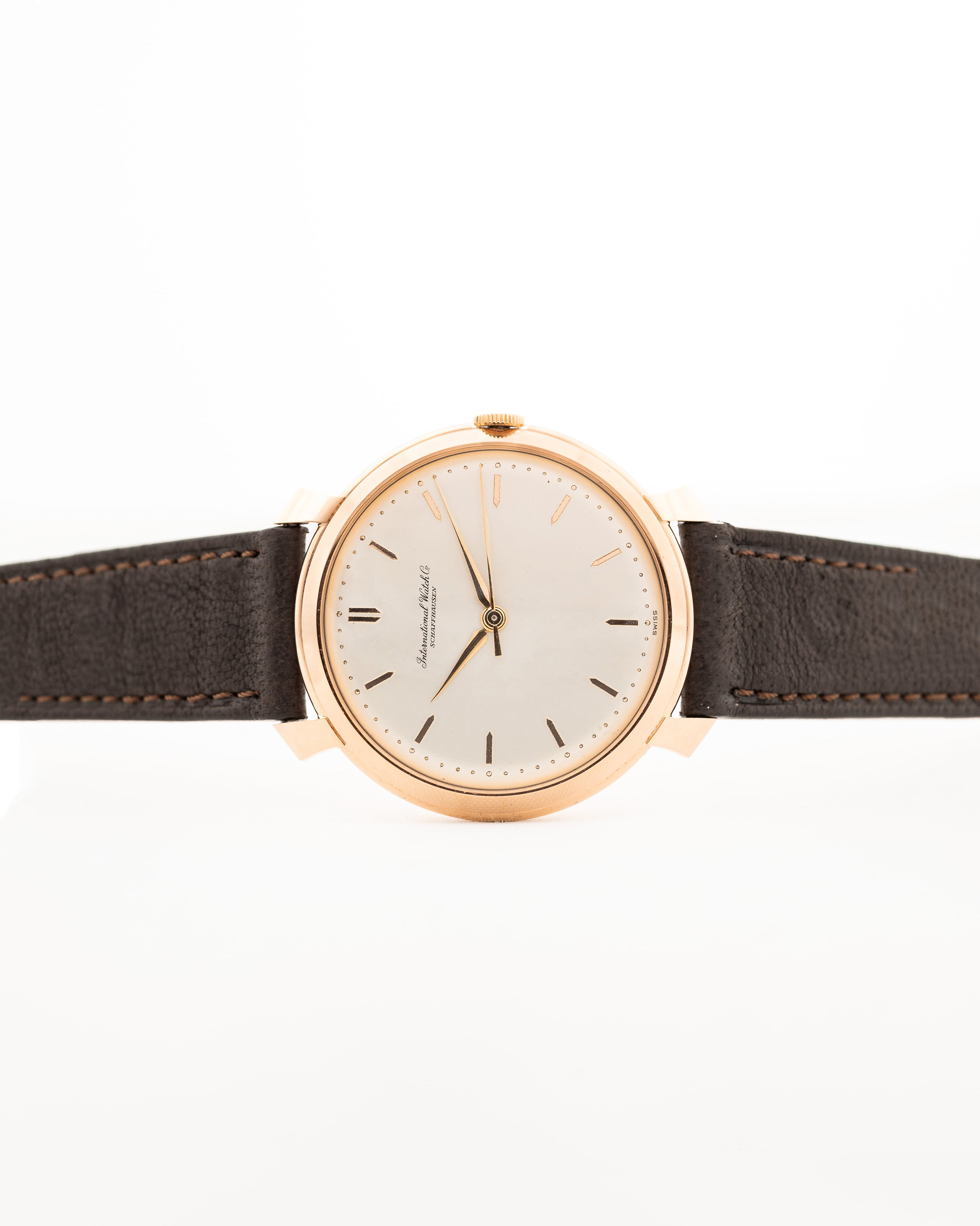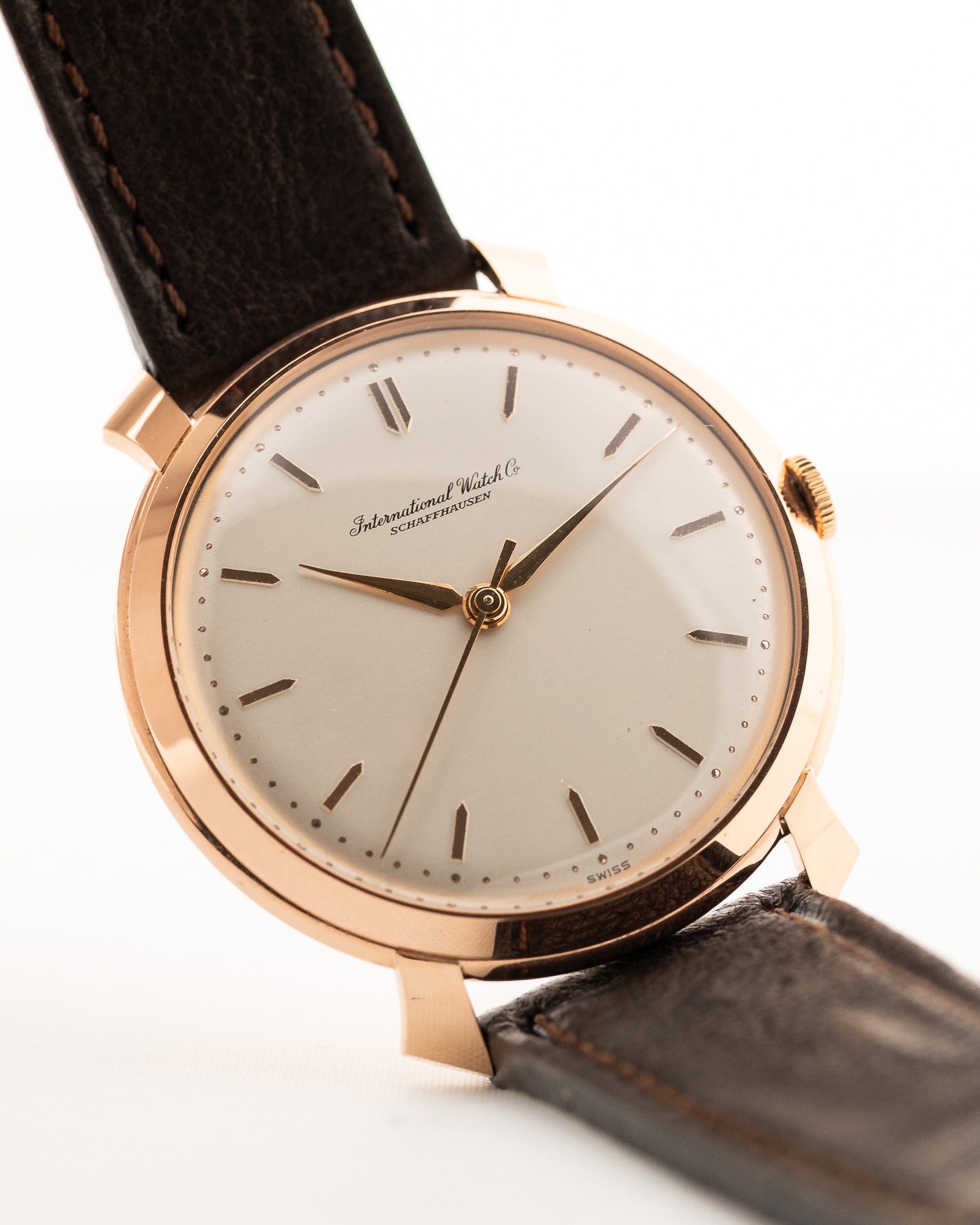 IWC 萬國錶很早就生產各式各樣的腕錶,從正裝腕錶到航空腕錶,應有盡有。這款 18K 玫瑰金白色/奶油色錶盤腕錶將成為眾多錶款中的常青樹,尤其是它還配備了美麗的鯊魚鰭錶耳。