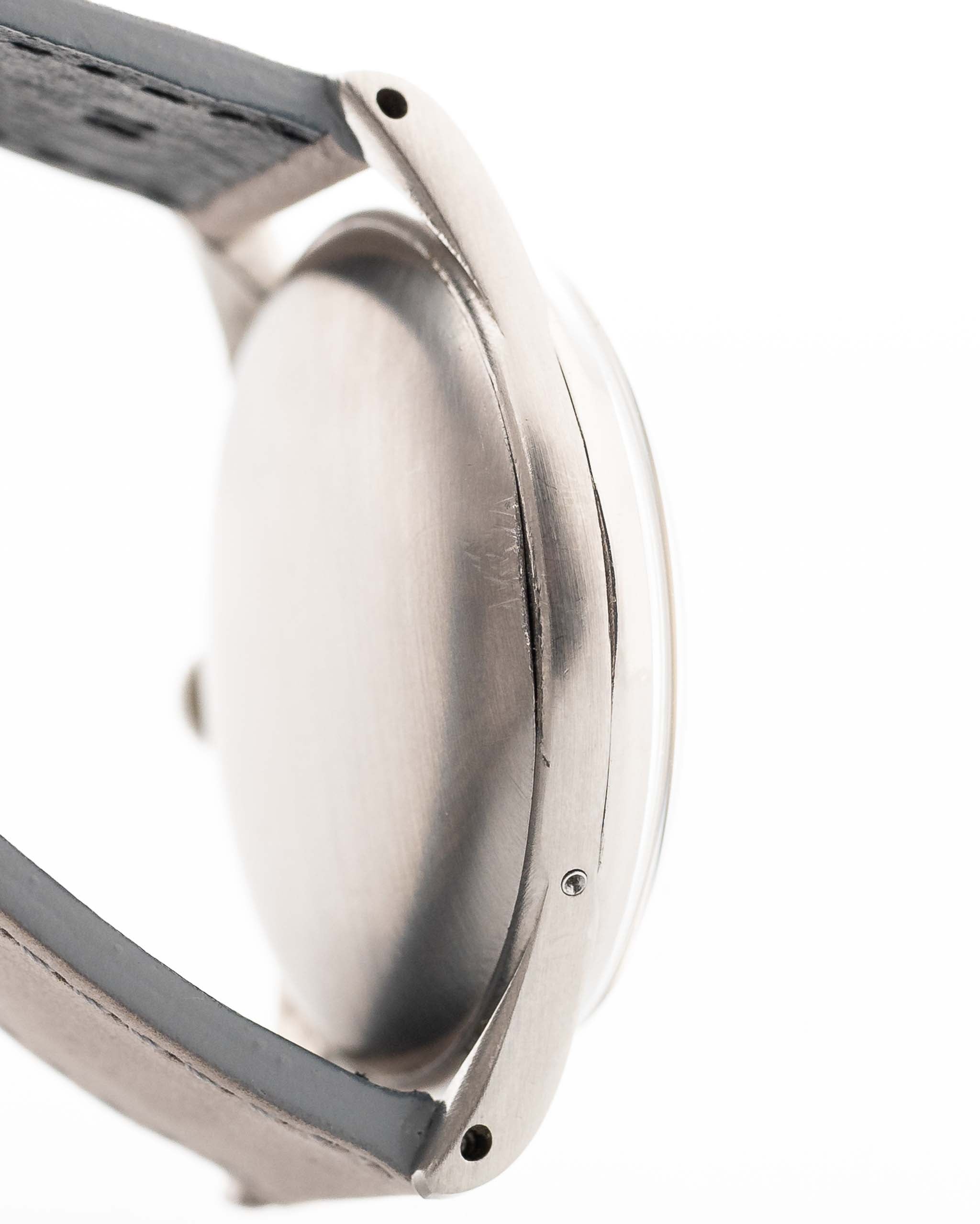 Omega Cosmic 於 1947 年推出,在 1956 年之前一直是品牌目錄中最尊貴的腕錶。這枚早期的 2471-1 不銹鋼表款尺寸為 35 毫米,搭載以 Lemania 為基礎的 Omega Calibre 381 機芯。