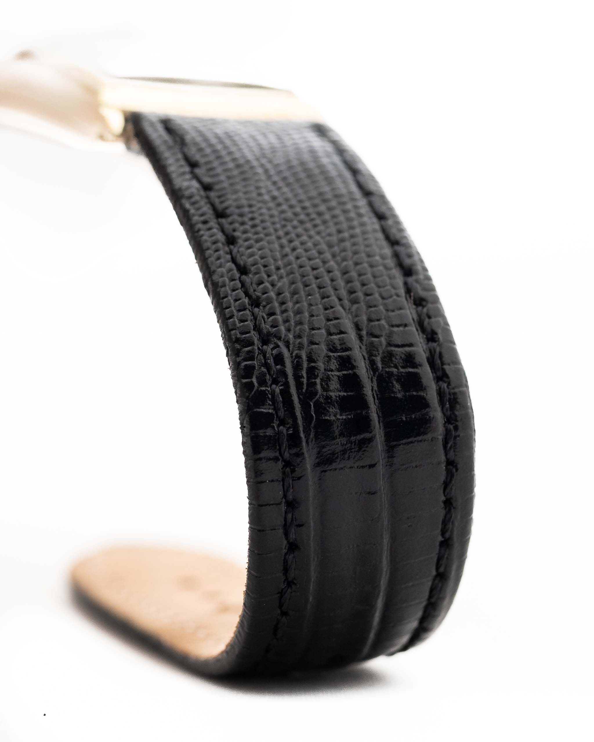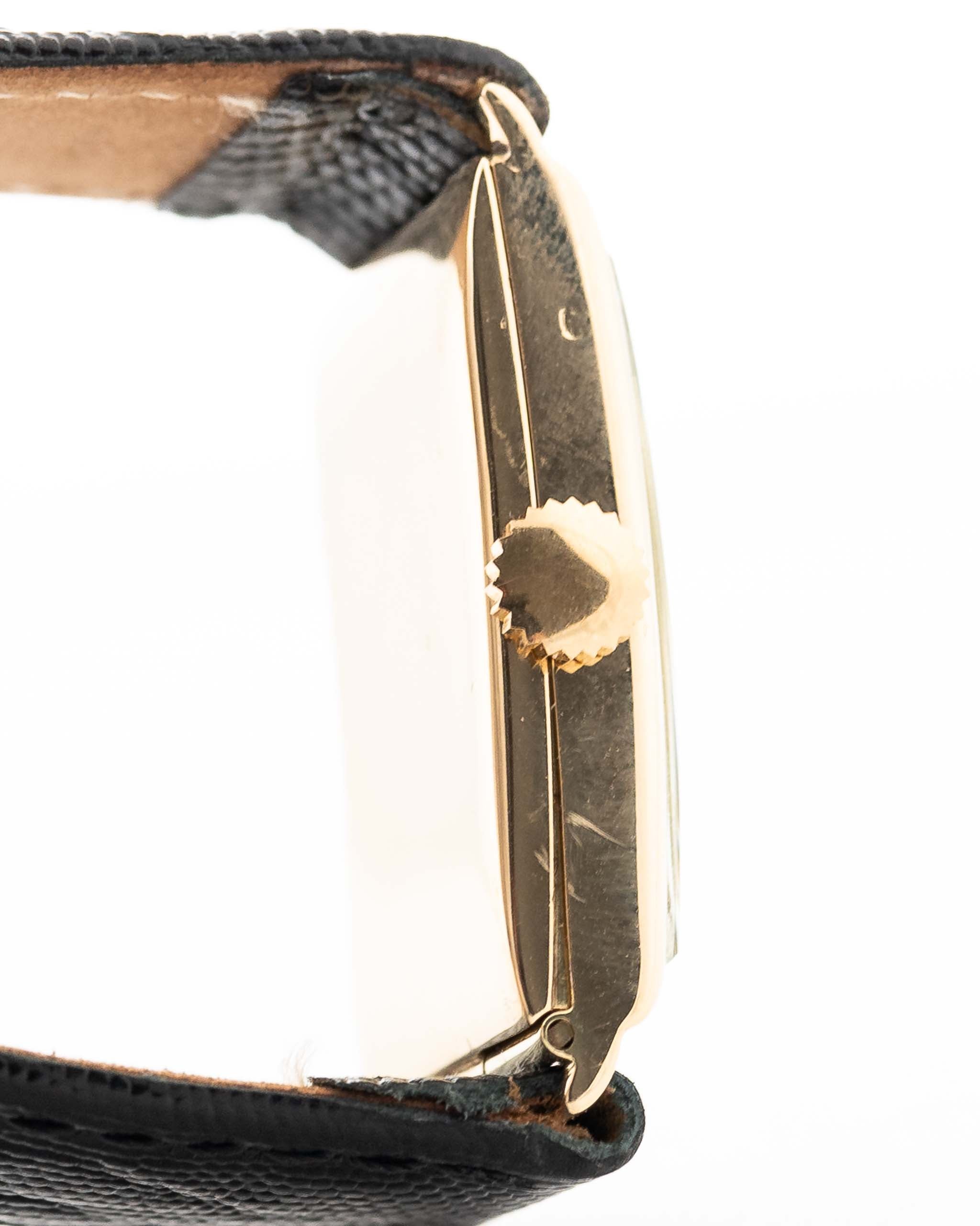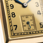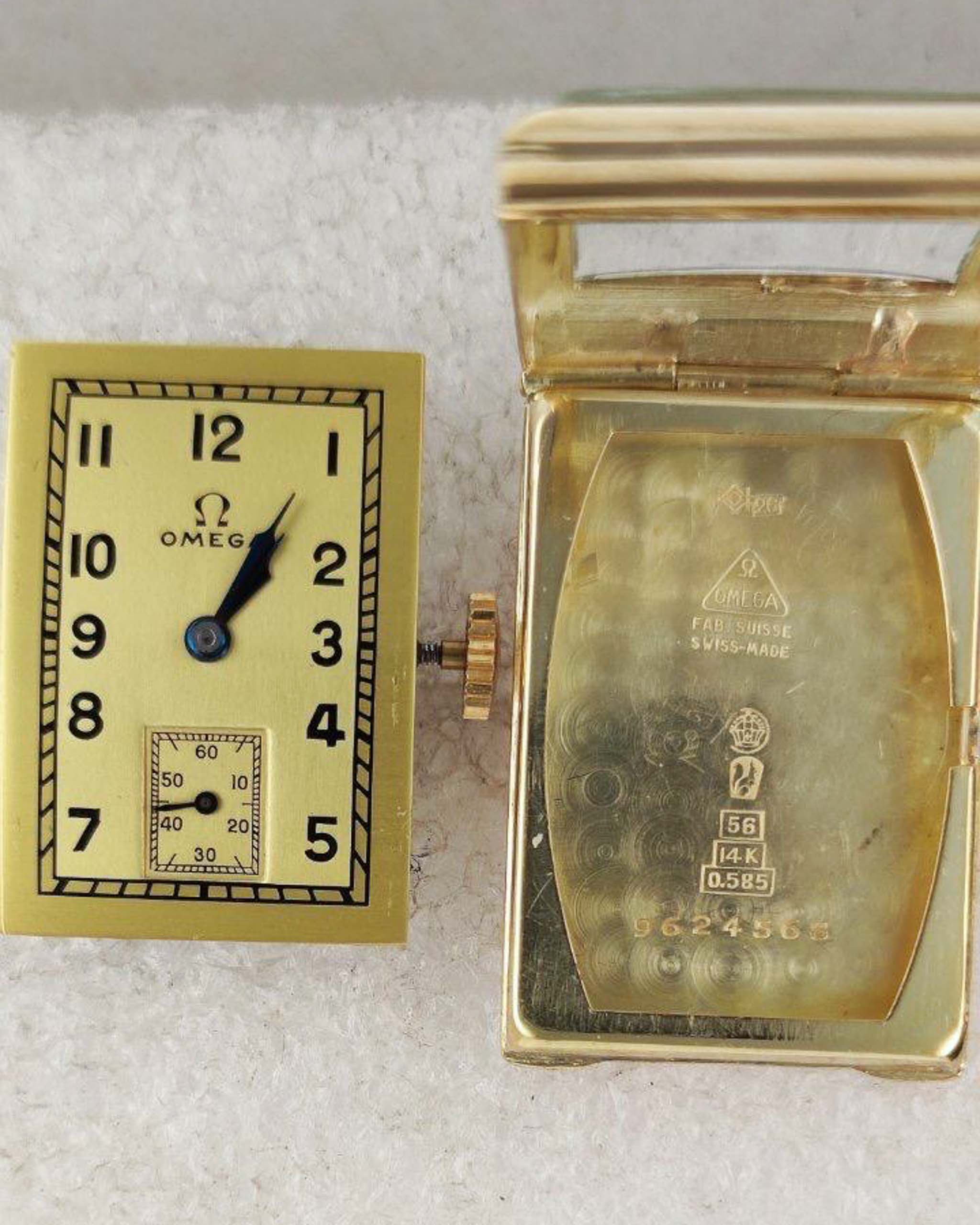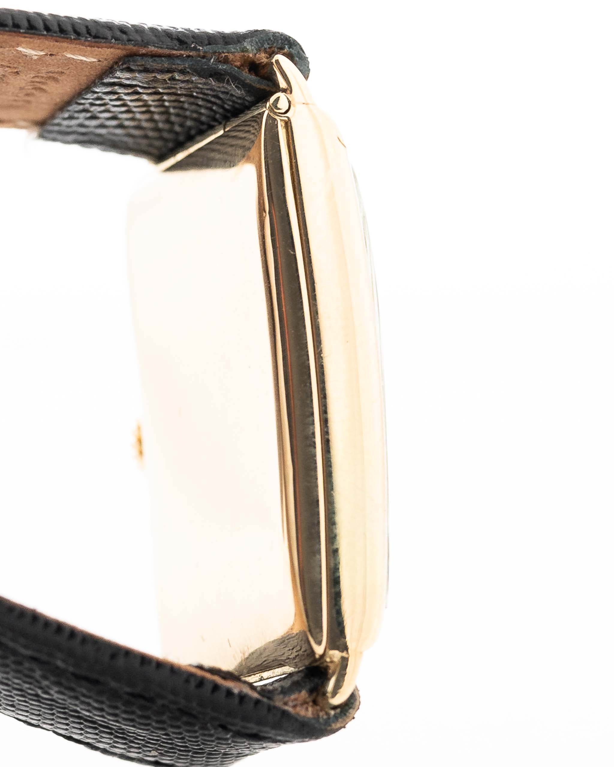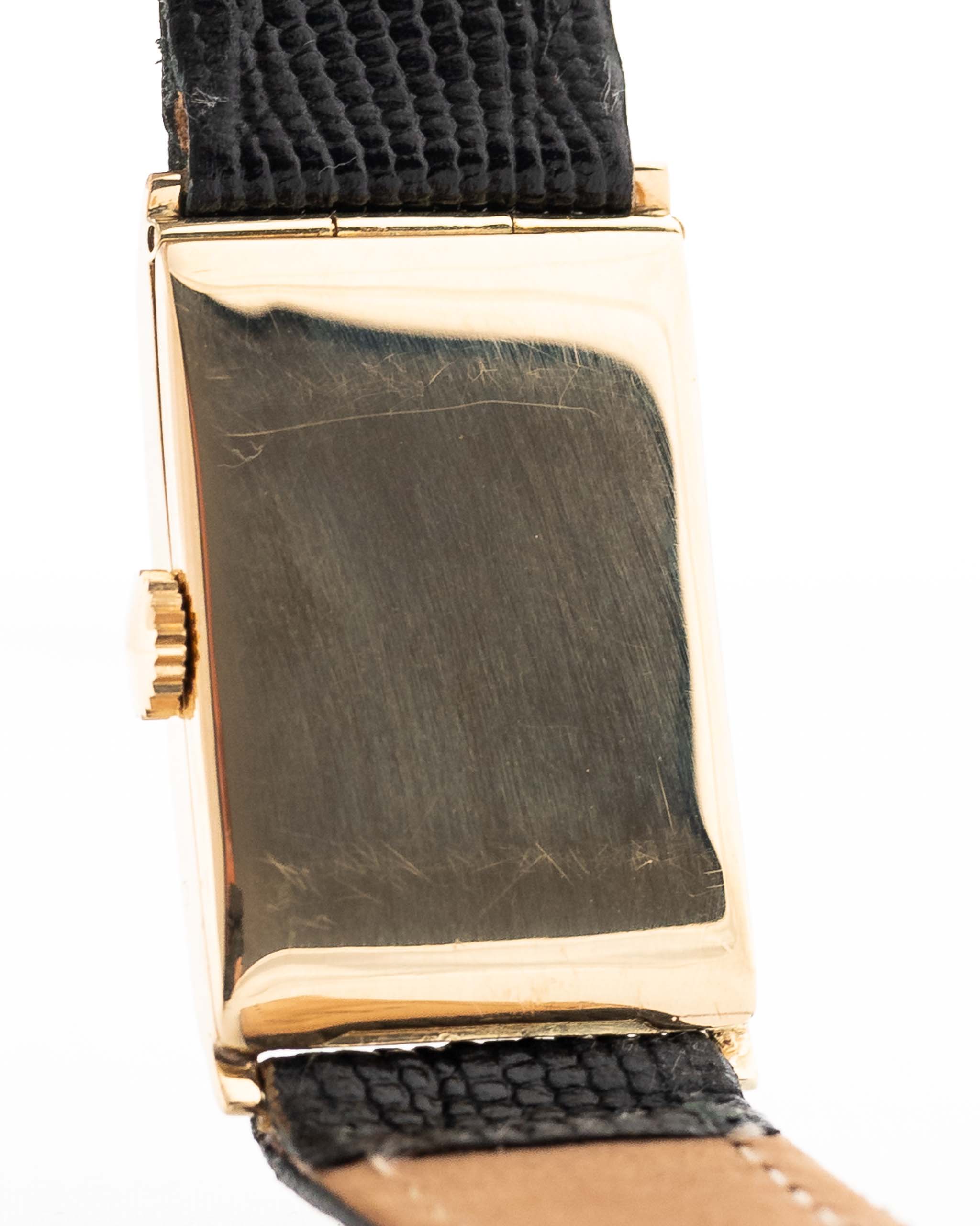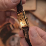 這款罕見的Omega 正裝腕錶來自 1935 年,體現了裝飾藝術時代的優雅氣質。長方形的 14K 黃金錶殼展現出腕間醒目而優雅的輪廓。