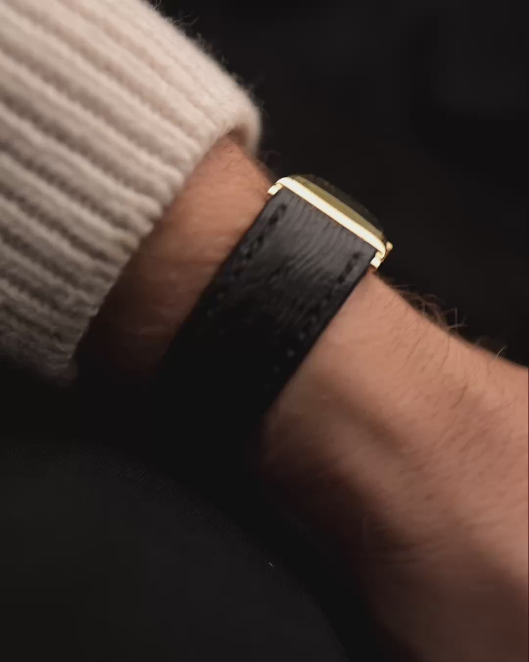 • 黑色售後市場真皮錶帶,適合最大 20 公分手腕尺寸 / 厚度 2.3 mm