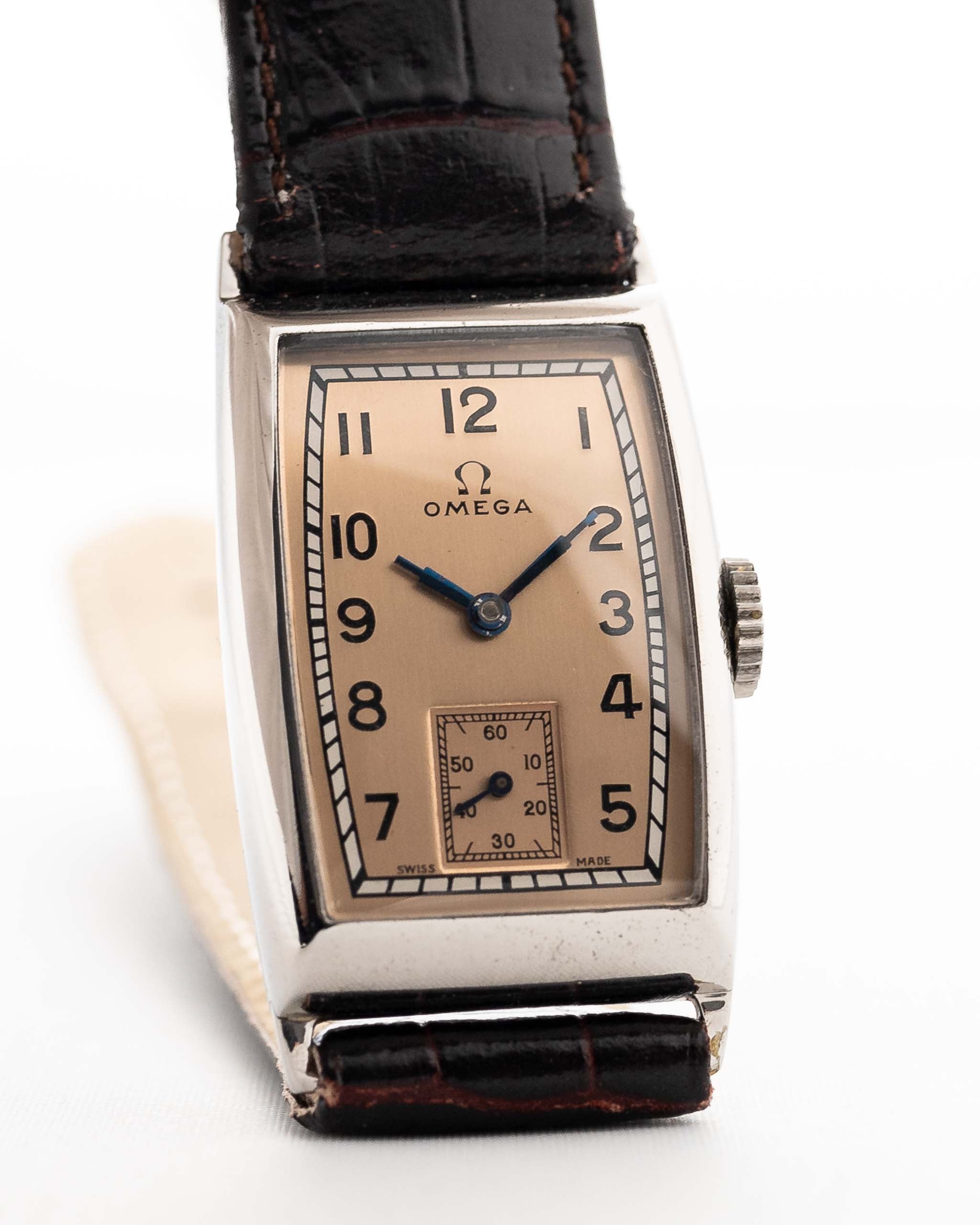 Omega 復古腕錶是工具錶的實用性與中世紀之美的完美結合。簡潔的錶盤。扭曲表耳。餡餅盤紋理。泛著懷舊光澤的指針。它們不僅是工具,更是一個世紀的運動藝術品。