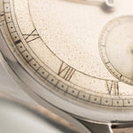 這款美麗的腕錶擁有簡約的錶殼設計,搭配夢幻的銀色/奶油色錶盤、葉形指針、羅馬時標以及可靠的 Cal.30T2 - 可追溯至 1943 年。