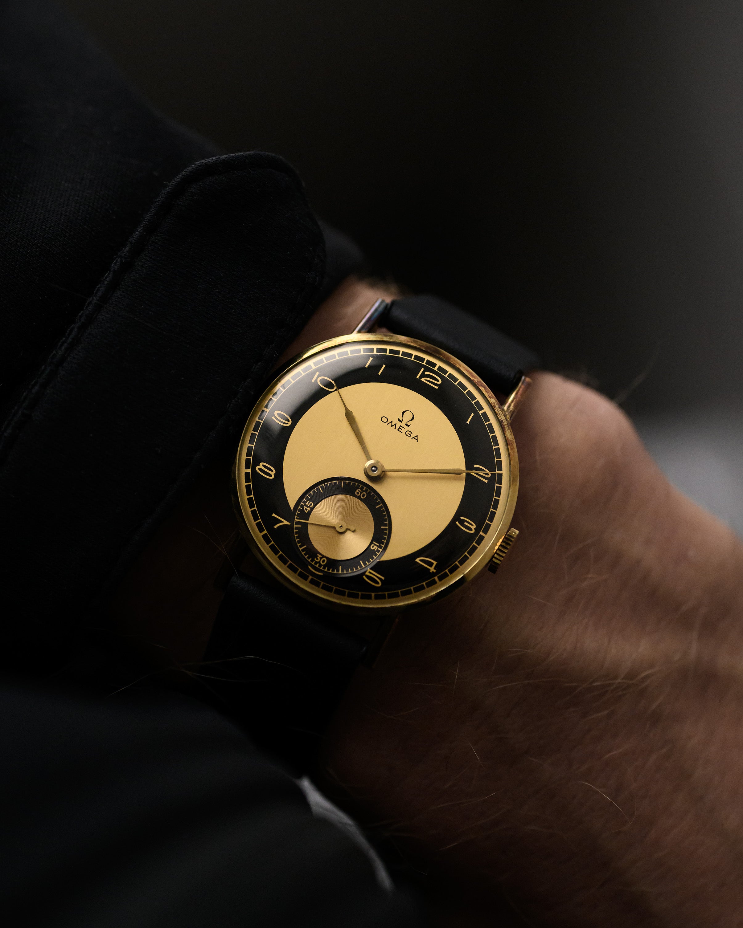 要在 Nos 狀態下找到一枚 40 年代的歐米茄腕錶是相當困難的。但是要找到一個擁有令人驚嘆的雙色藝術裝飾表盤和美麗的副秒針幾乎是不可能的。