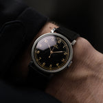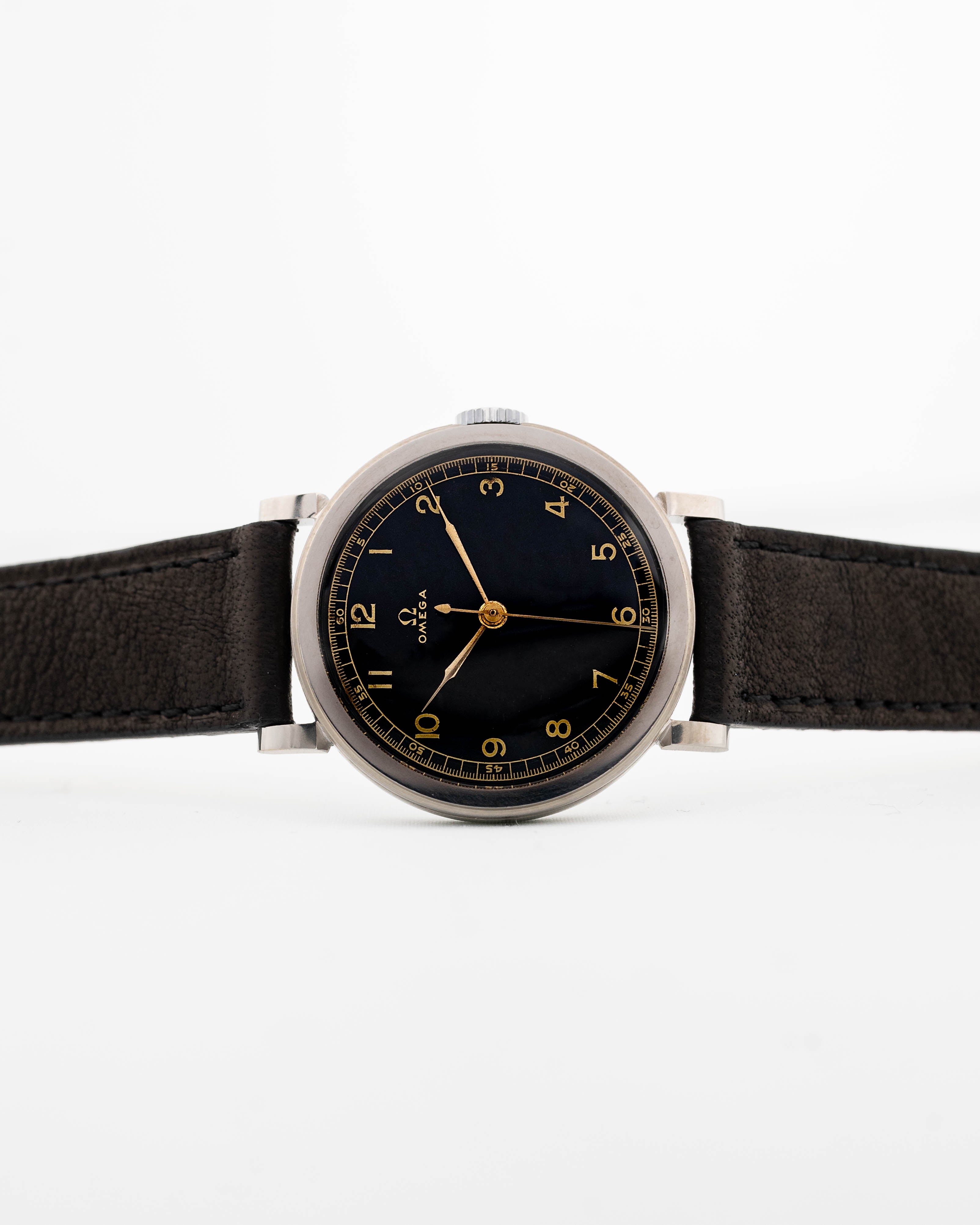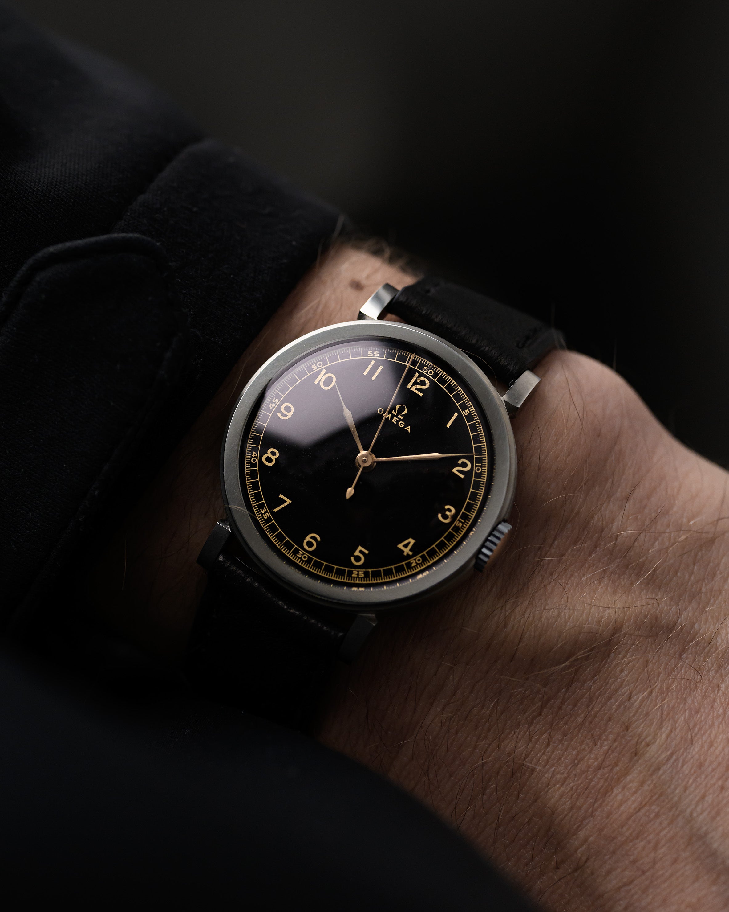 要找到一枚狀態良好的 30 年代歐米茄腕表並不容易,但要找到一枚擁有美麗的光面黑色錶盤、金色阿拉伯數字和相匹配的針筒指針的歐米茄腕表,幾乎是不可能的。