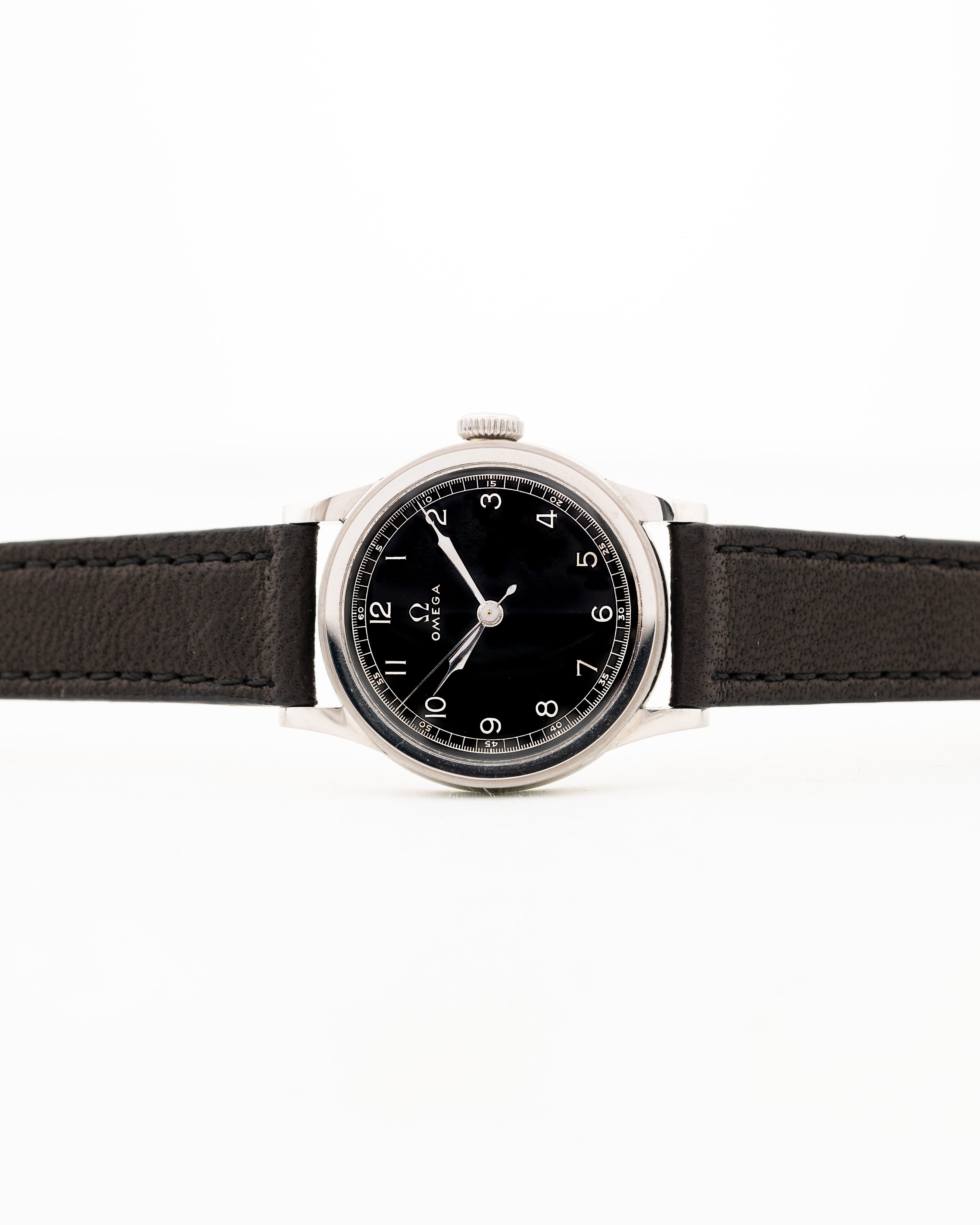 要找到一枚狀態良好的 30 年代歐米茄腕表並不容易,但要找到一枚擁有漂亮的黑色光面錶盤、銀色阿拉伯數字和相匹配的針筒指針的歐米茄腕表幾乎是不可能的。