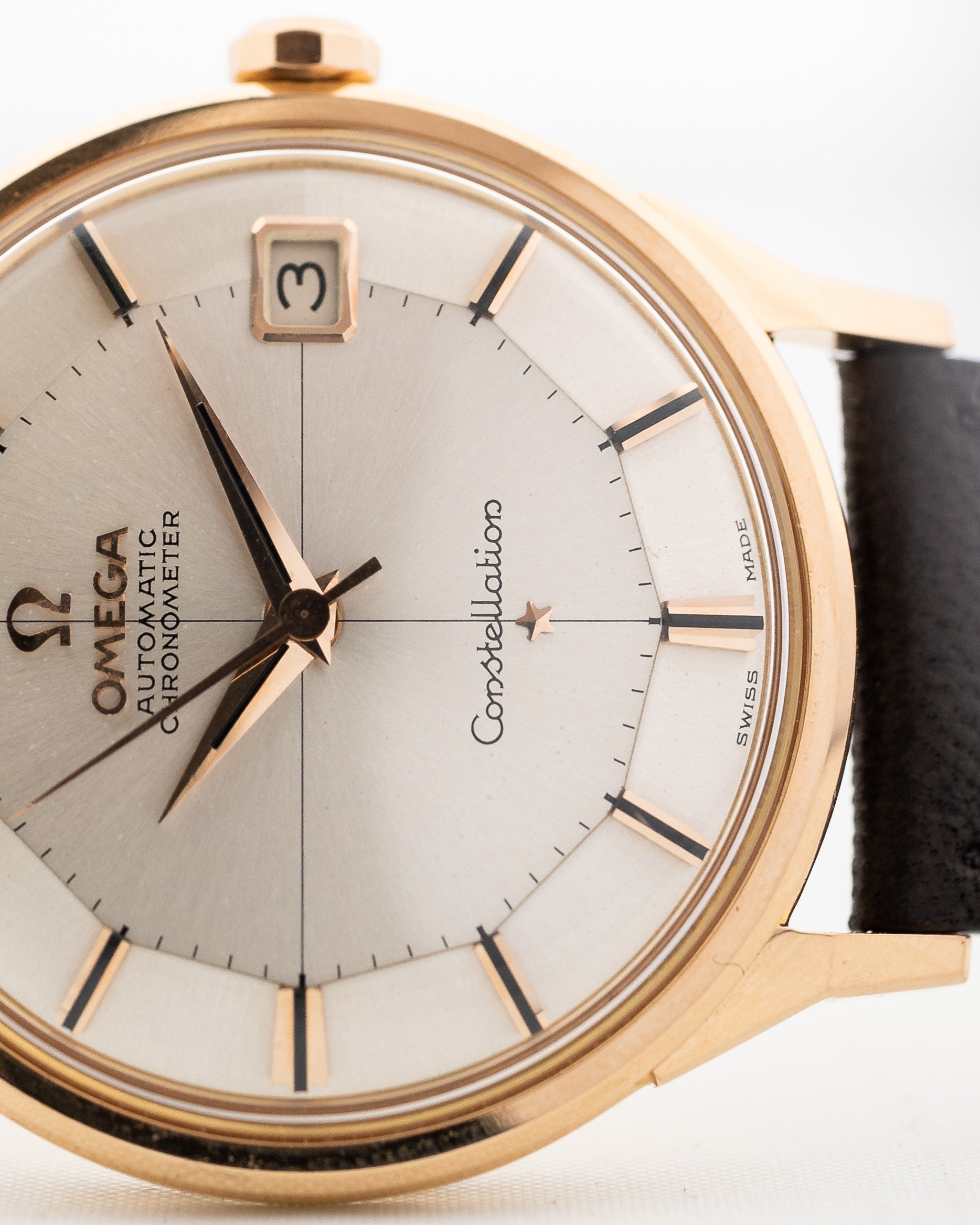 比例勻稱、簡潔而經典,這款 Constellation 配備旋入式錶背、Omega 561 自動天文台機芯和微微下翻的錶耳。