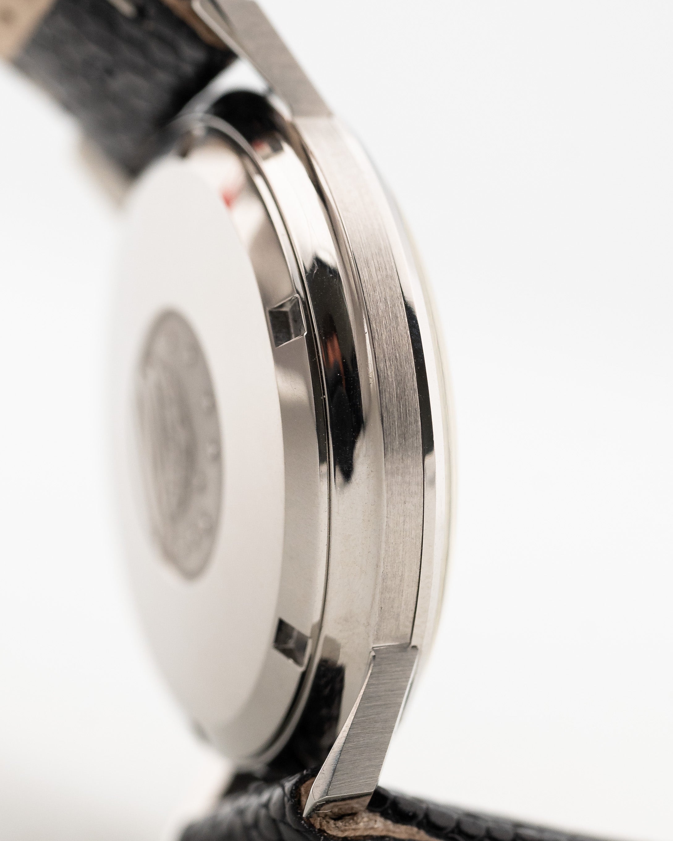 比例勻稱、簡潔而經典,這款 Constellation 配備旋入式錶背、Omega 564 自動天文台機芯和微微下翻的錶耳。