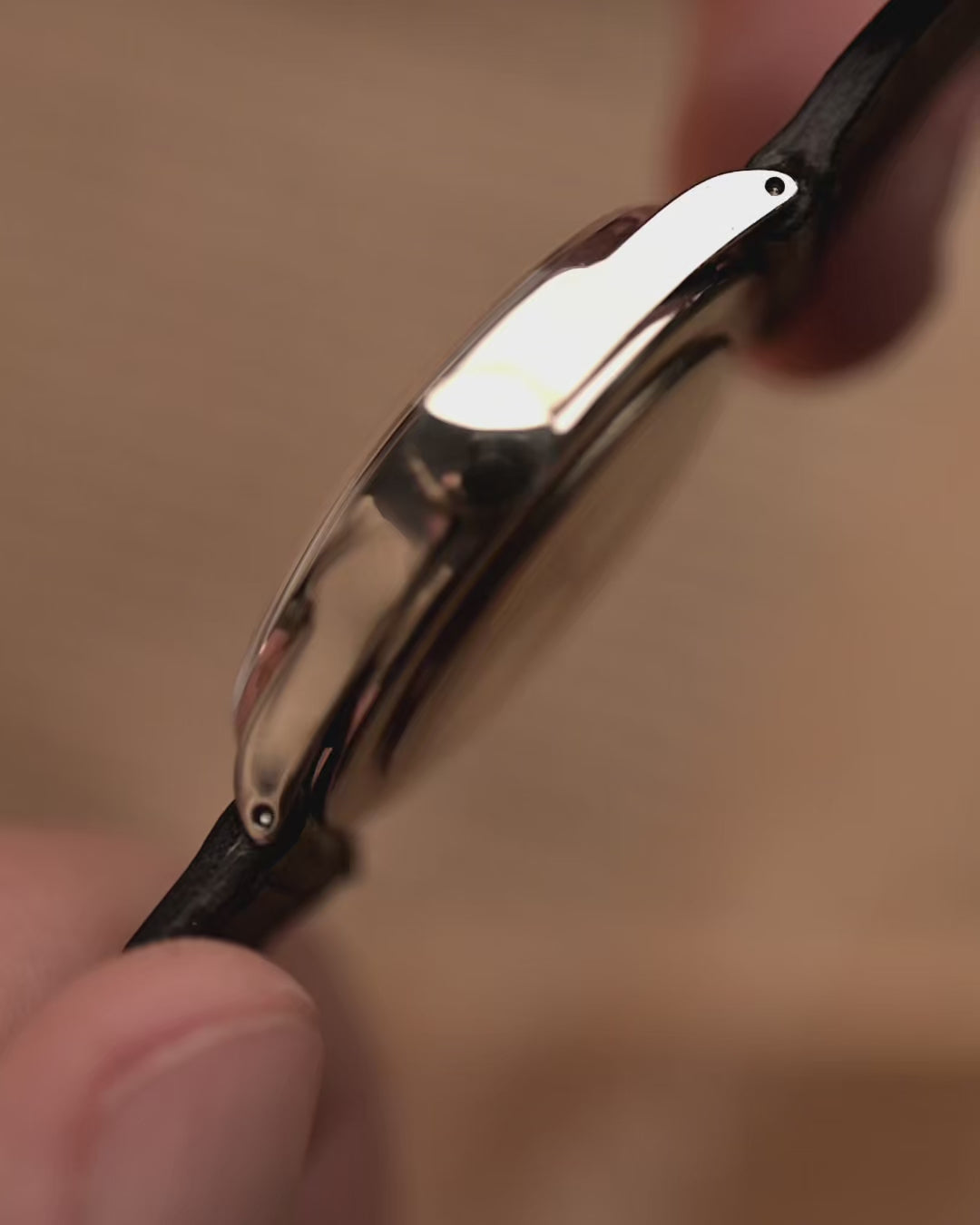 這枚1935 年的 Omega是 20 世紀早期瑞士製錶業的傑出典範,也是真正的收藏珍品。原裝黑色亮面鍍金錶盤,配以金色阿拉伯數字、同款鍍金針管指針和分針軌道,散發優雅氣質。像這樣美麗的錶盤極為罕見。
