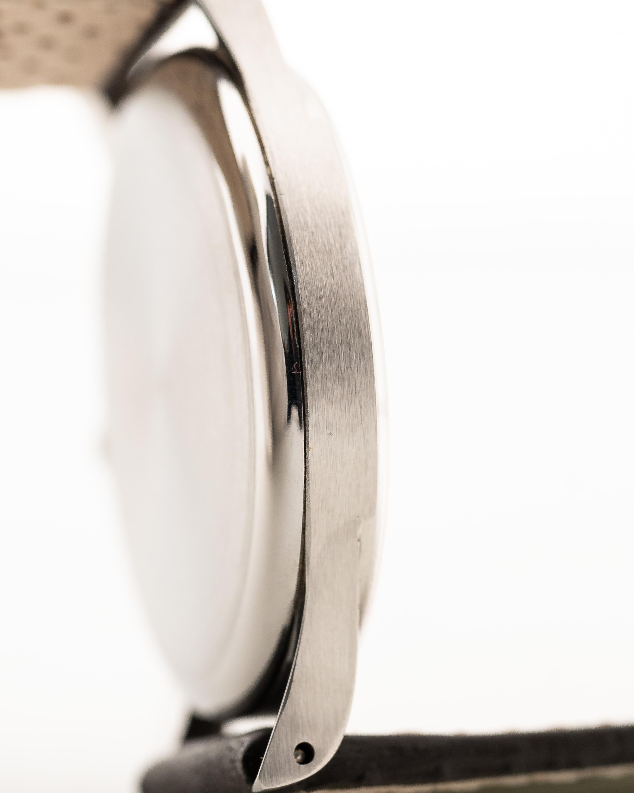 錶盤上的黃金阿拉伯數字和黃金葉形指針完美無瑕,而巨大的輔助秒針錶盤則進一步提升了這款腕錶的著裝品味。這款腕錶的狀況令人難以置信,錶殼銳利而乾淨。
