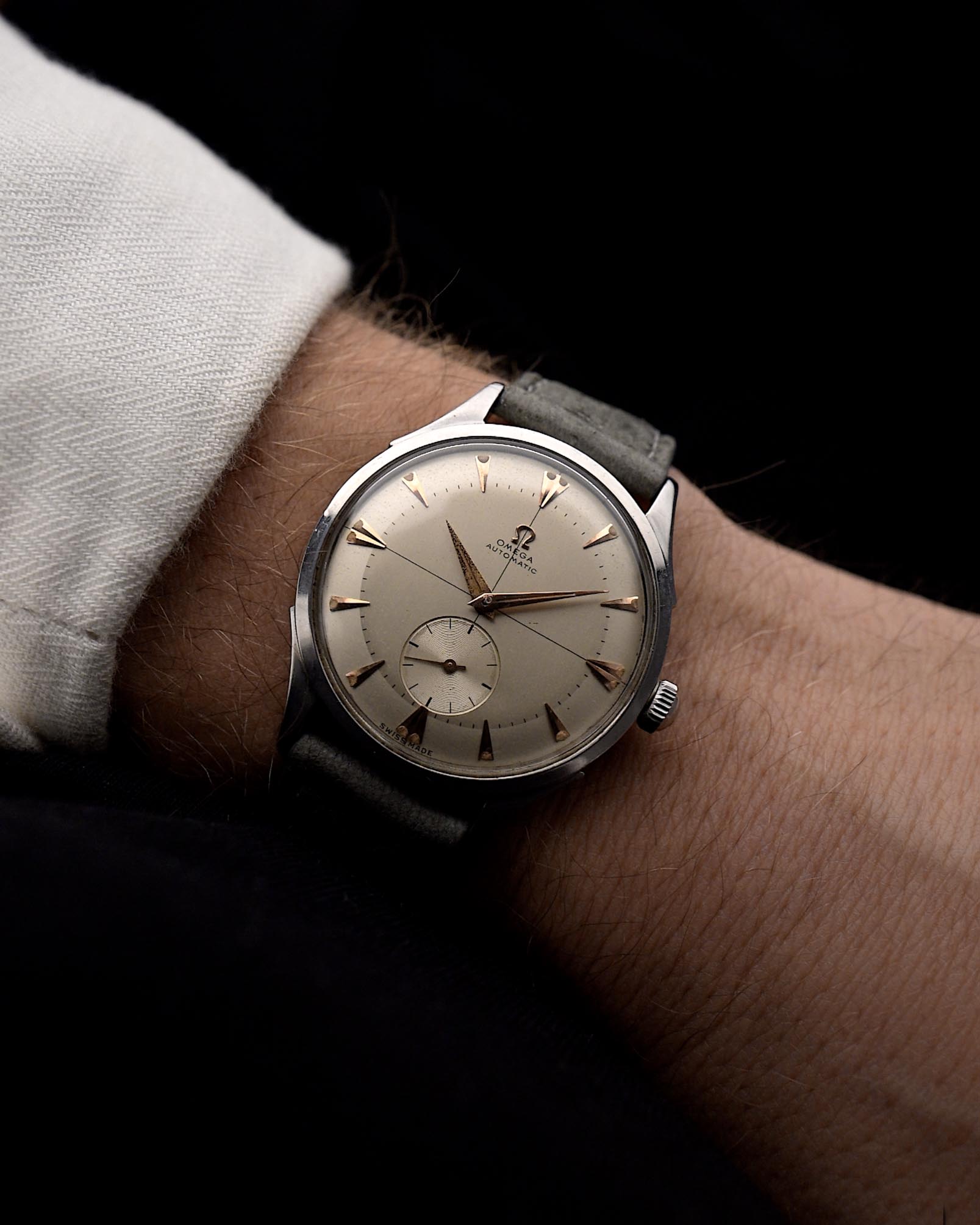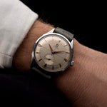 1940 年代是 Omega(歐米茄)的美好時光,這款美麗的正裝腕錶就是最好的例證。這款腕錶不僅美觀,而且實用。35 mm 不銹鋼錶殼、下翻式錶耳、華麗的銀色錶盤,絕對是您的不二之選。
