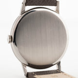 在此,您可以看到 Omega 於 1954 年製造的迷人正裝腕錶。這款腕錶擁有 37.5 mm 的巨大 Jumbo 不銹鋼錶殼,配備非常美觀的斜角錶耳、白色/銀色雙色錶盤以及造型驚人的黃金時標和指針。
