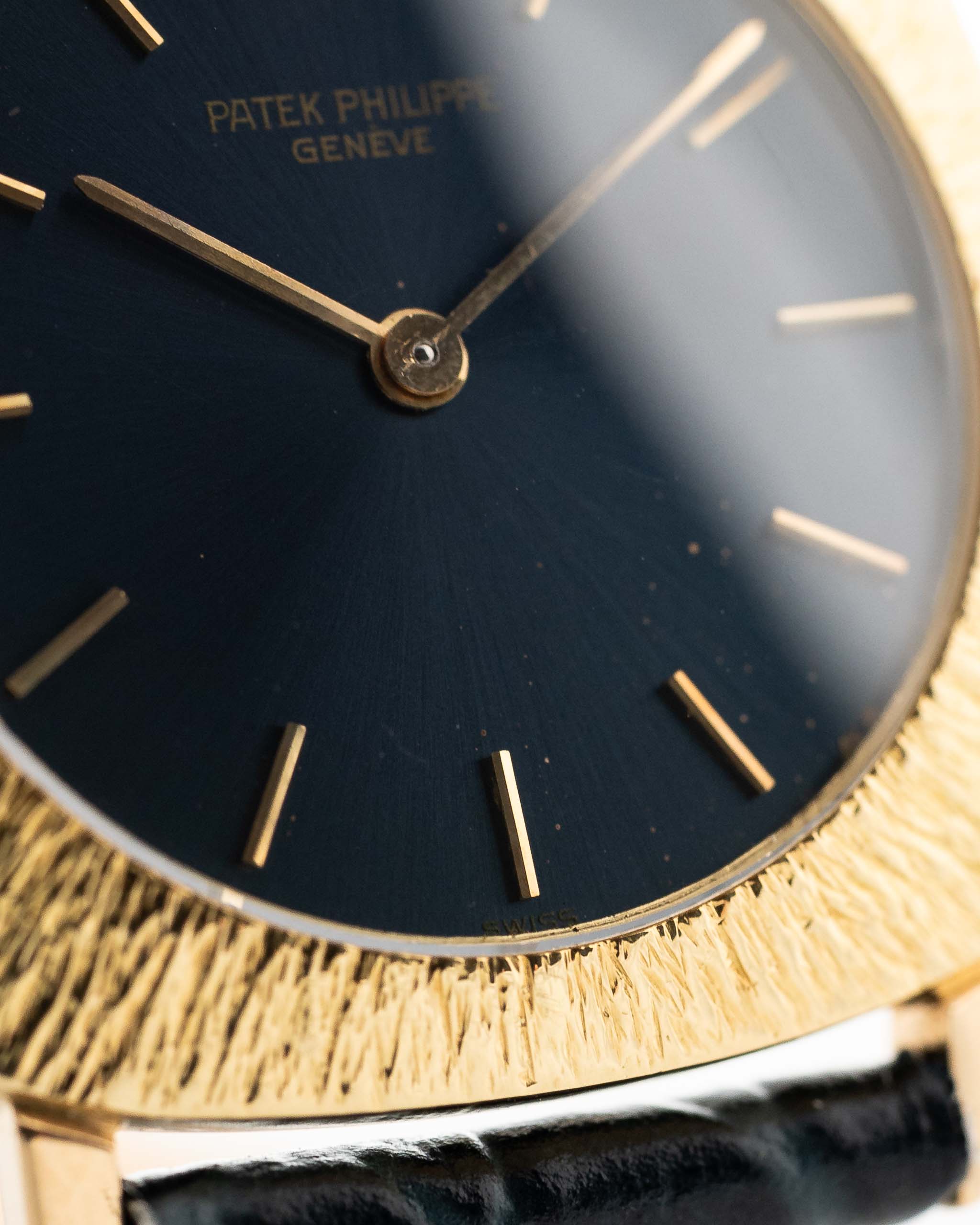 這款百達翡麗腕錶的錦上添花之處,是百達翡麗腕錶上少見的巨大方形錶圈與樹皮裝飾。