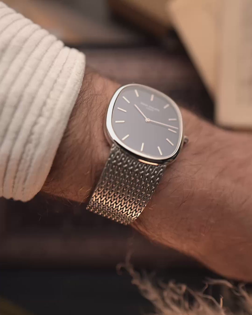 百達翡麗3738 Ellipse 18K白金腕錶,1970年代 - 百達翡麗3738 Ellipse 18K白金腕錶,1970年代 黃金比例的精煉 - 皇家藍Ellipse Jumbo腕錶