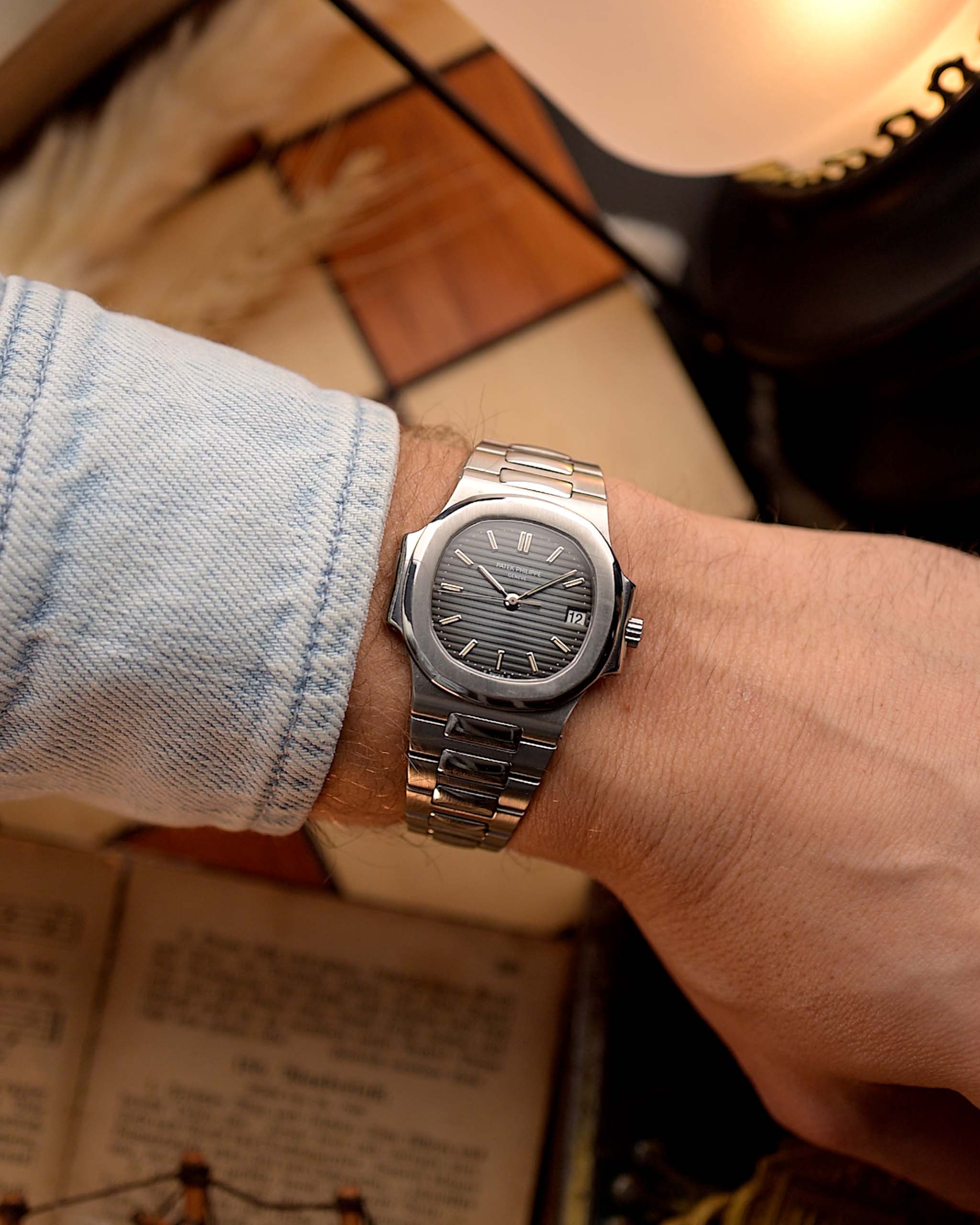 • 從未碰觸過的原裝黑灰色 Nautilus sigma 羅紋錶盤,完好無暇。
