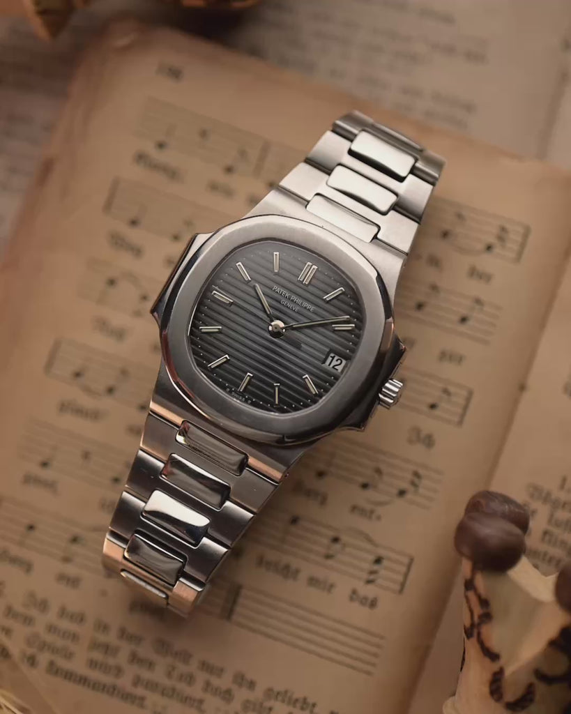 百達翡麗Nautilus 3800代表著經典Nautilus系列的第二代作品——這是對傑拉德·珍塔最初3700設計的精緻進化,更顯緊湊精緻。此錶款 於1980年代初問世,生產直至2006年,配備 直徑37.5毫米的不鏽鋼錶殼,完美平衡比例,完整保留鈦霸系列標誌性元素:圓潤八角形錶圈、兩側延伸的「耳翼」設計,以及橫向輻條紋的無煙煤色錶盤