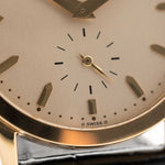 這款腕錶也是"Sigma Dial「款式,六點鐘位置的 」SWISS "旁邊有兩個 Sigma 標誌,代表其指針和小時刻度均由純金製成。