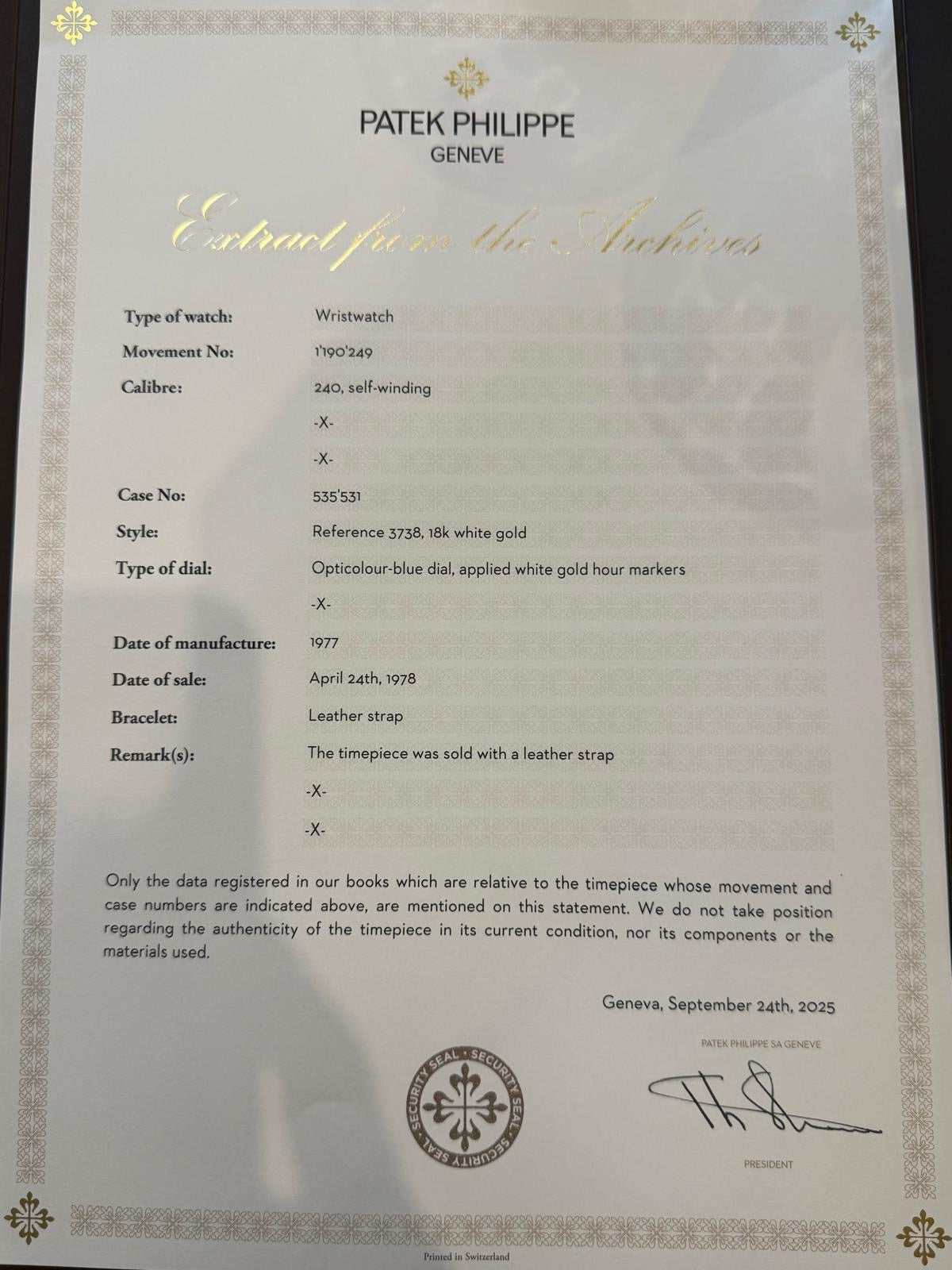 - 摘錄自百達翡麗 2025 年 9 月的檔案