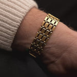 這款Protocole腕錶的詮釋令人一見傾心:幾何形狀的18K黃金錶殼相匹配的黃金錶鏈完美結合,形成簡潔線條和雕塑比例的統一設計語言。金色錶盤巧妙地與錶鏈紋理相映成趣,帶來只有伯爵才能達到的和諧與精緻。