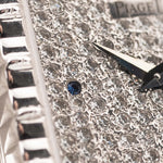 - 原裝從未碰觸的鋪鑲錶盤,飾以白色鑽石和四顆藍寶石,分別位於 12、3、6、9 位置。