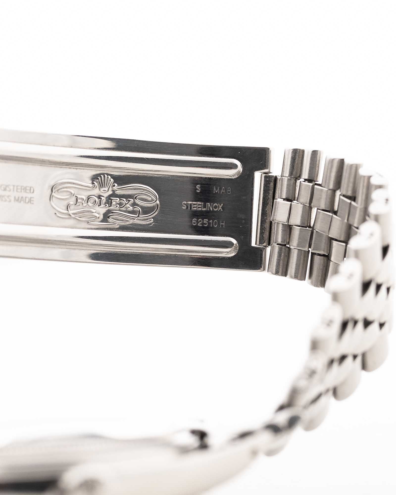 - 原廠 Rolex 不銹鋼摺疊式 Jubilee 手環,彈性較大,適合 20 公分以下手腕尺寸 / 厚度 2.7 mm。