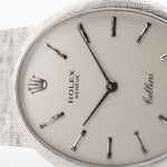 相較於知名的運動型錶款,Rolex Cellini 系列展現了 Rolex 較為正式的一面。我們的 Ref.4094 配備 18K 白金橢圓形錶殼,這對 Rolex 來說是不尋常的錶殼形狀。