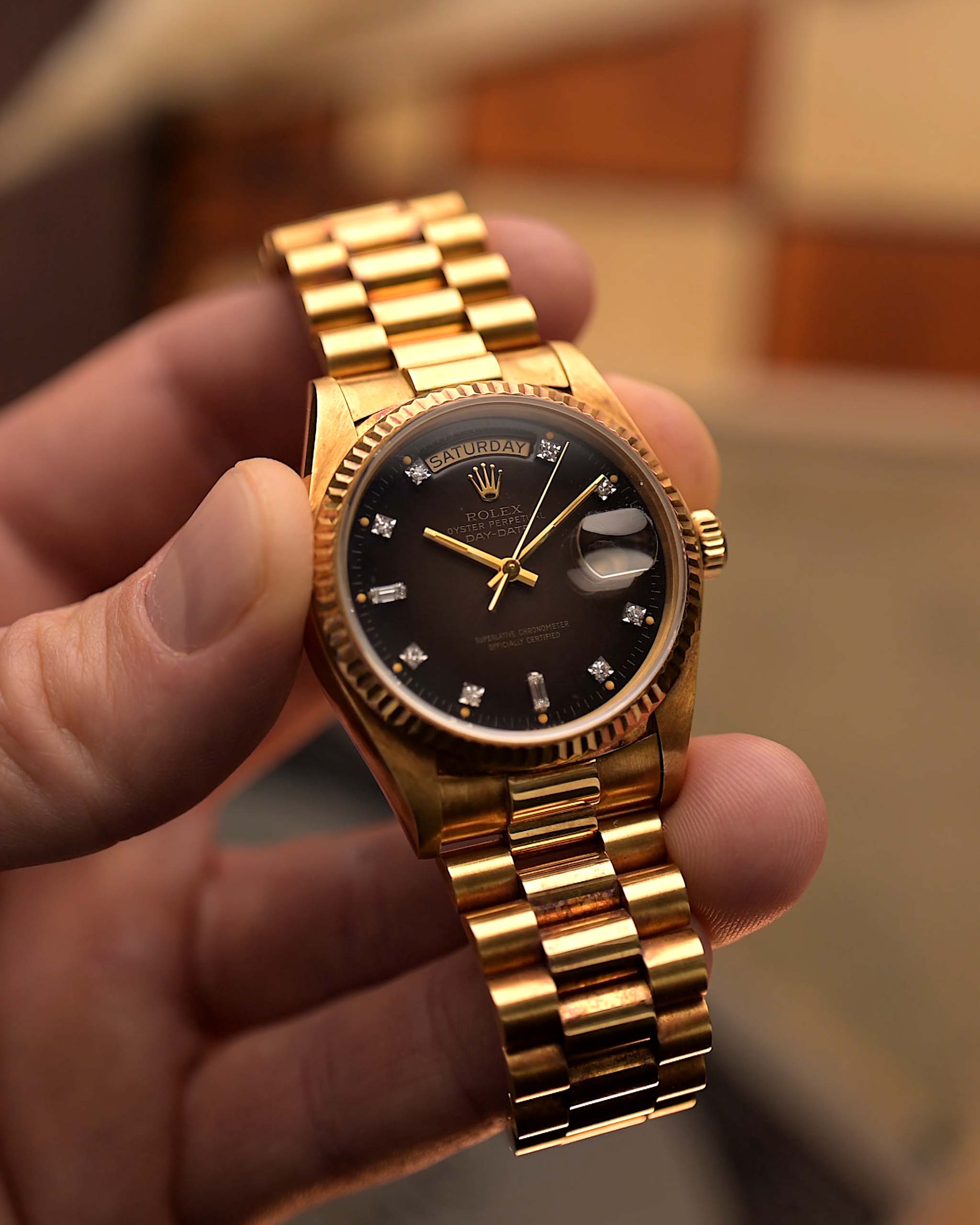 勞力士Day-Date 18038, 棕色Vignette鑲鑽錶盤, 1981年- 總統腕錶 - 動力、尊貴與古樸