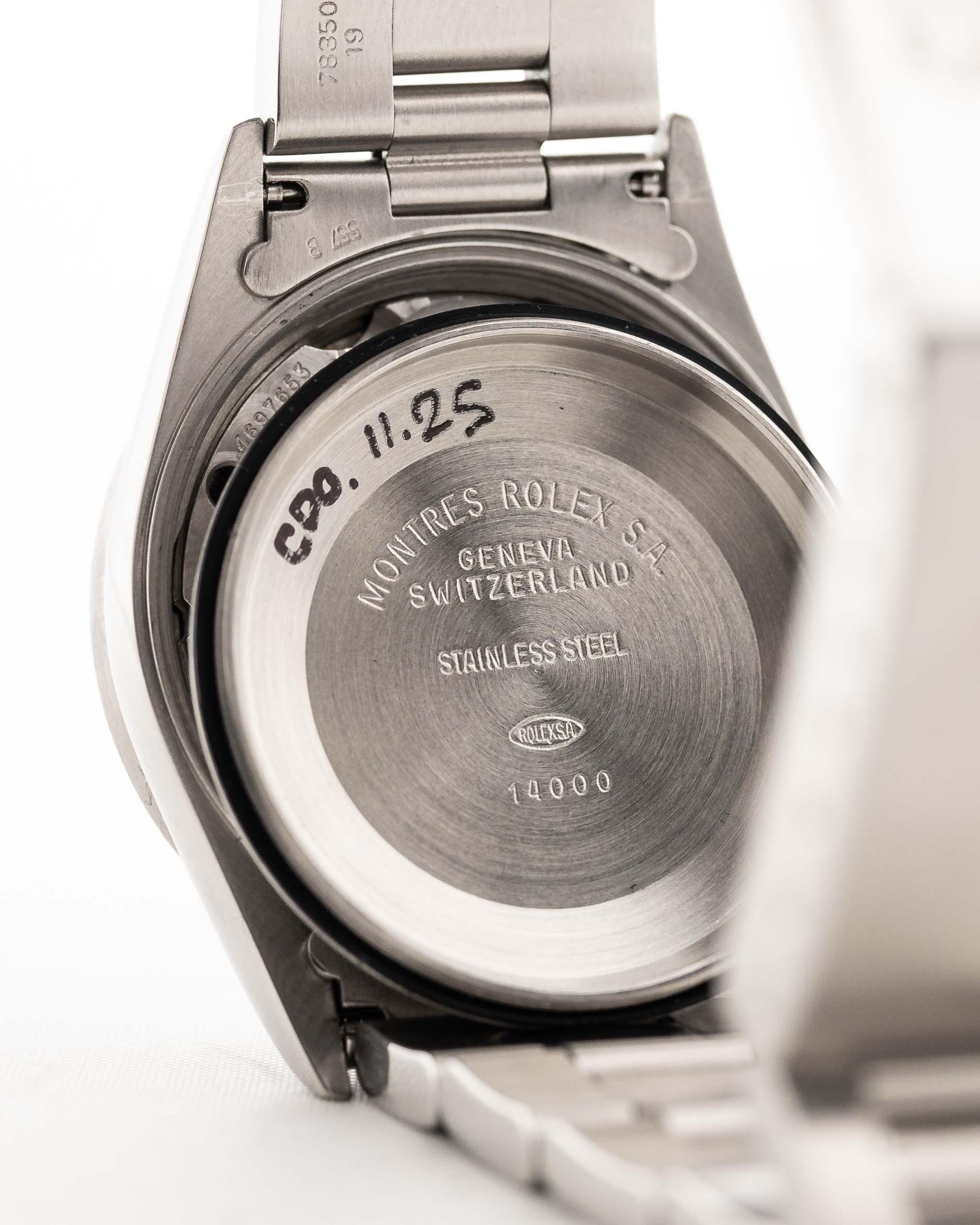 不鏽鋼錶殼保持著極佳狀態,搭配備受青睞的平面機刻錶圈——這細微的細節賦予腕錶獨特個性。1996年原裝Oyster錶帶完美呼應整體設計,兼具舒適佩戴感與卓越耐用性。