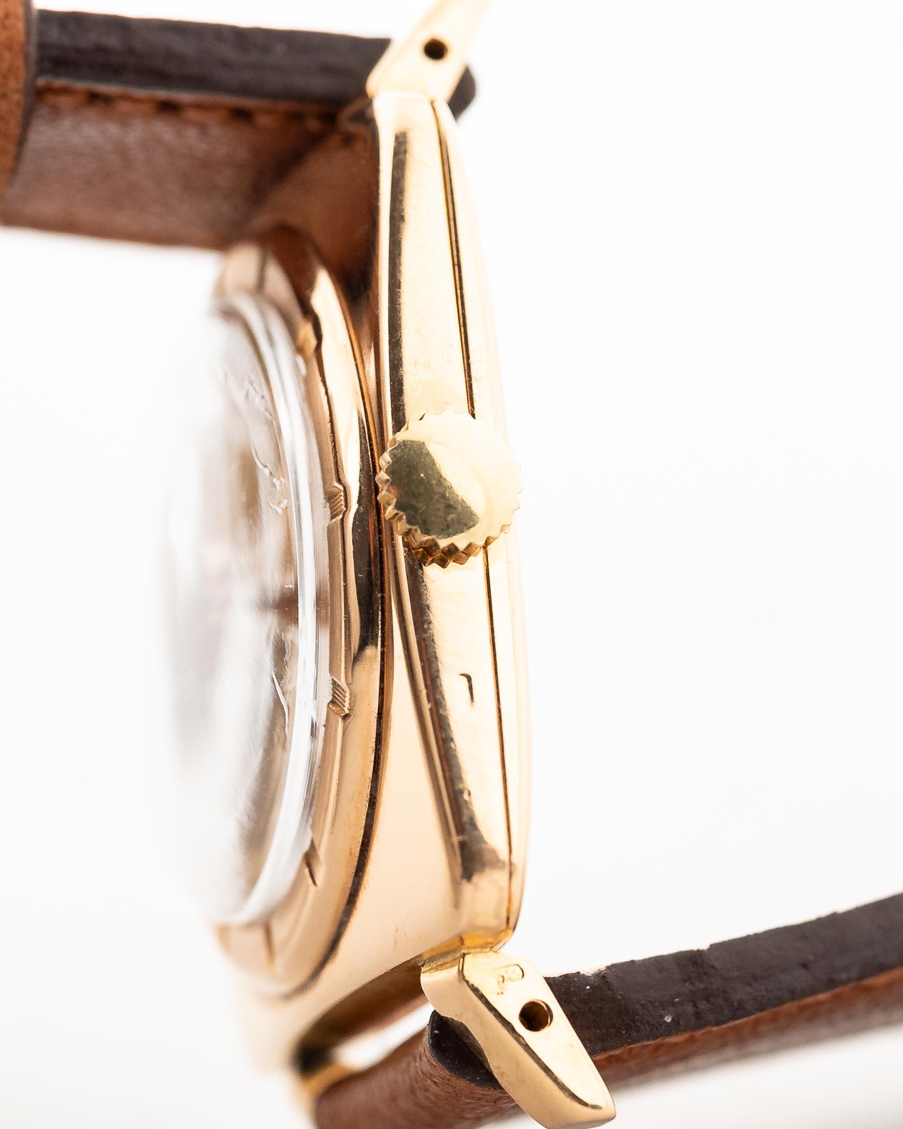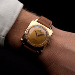 這款 Universal Genéve Square 18K 玫瑰金腕錶非常特別,您不會在其他手腕上經常看到它。它只在 1955-1962 年間生產了 7 年。它有一些 Polerouter 的元素,例如表圈,它不是像往常一樣勝出在錶盤上,而是在 18K 玫瑰金方形錶殼上。這個設計細節散發出與眾不同的魔力,在手腕上創造出令人驚訝的存在感。