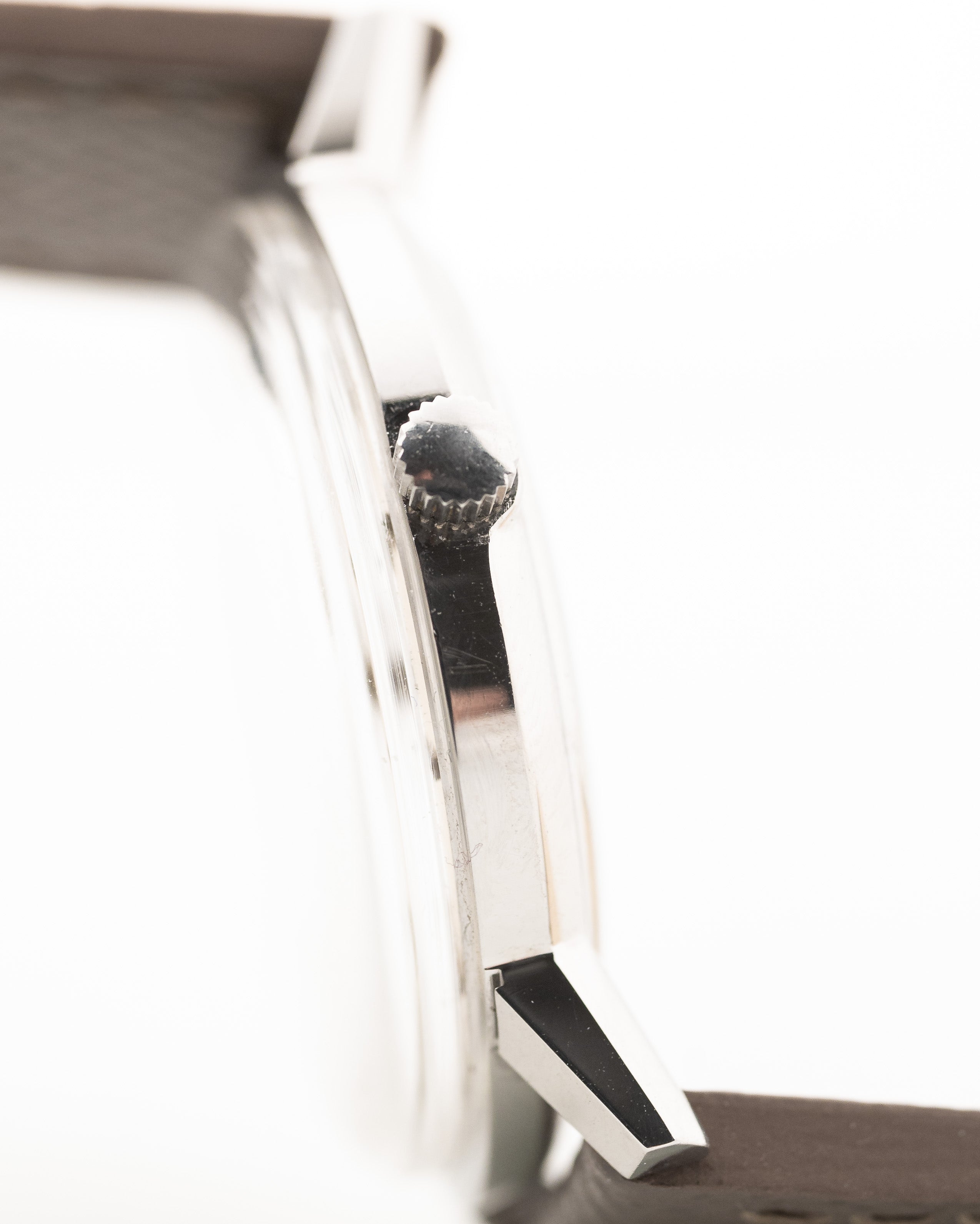 您在此看到的是最稀有的版本之一:"Compact"。它配備完美無瑕的銀色陽光紋錶盤、鑲嵌縞瑪瑙的時標以及邊緣微圓的錶緣。總體而言,這是一款設計精美、航空歷史悠久的腕錶。