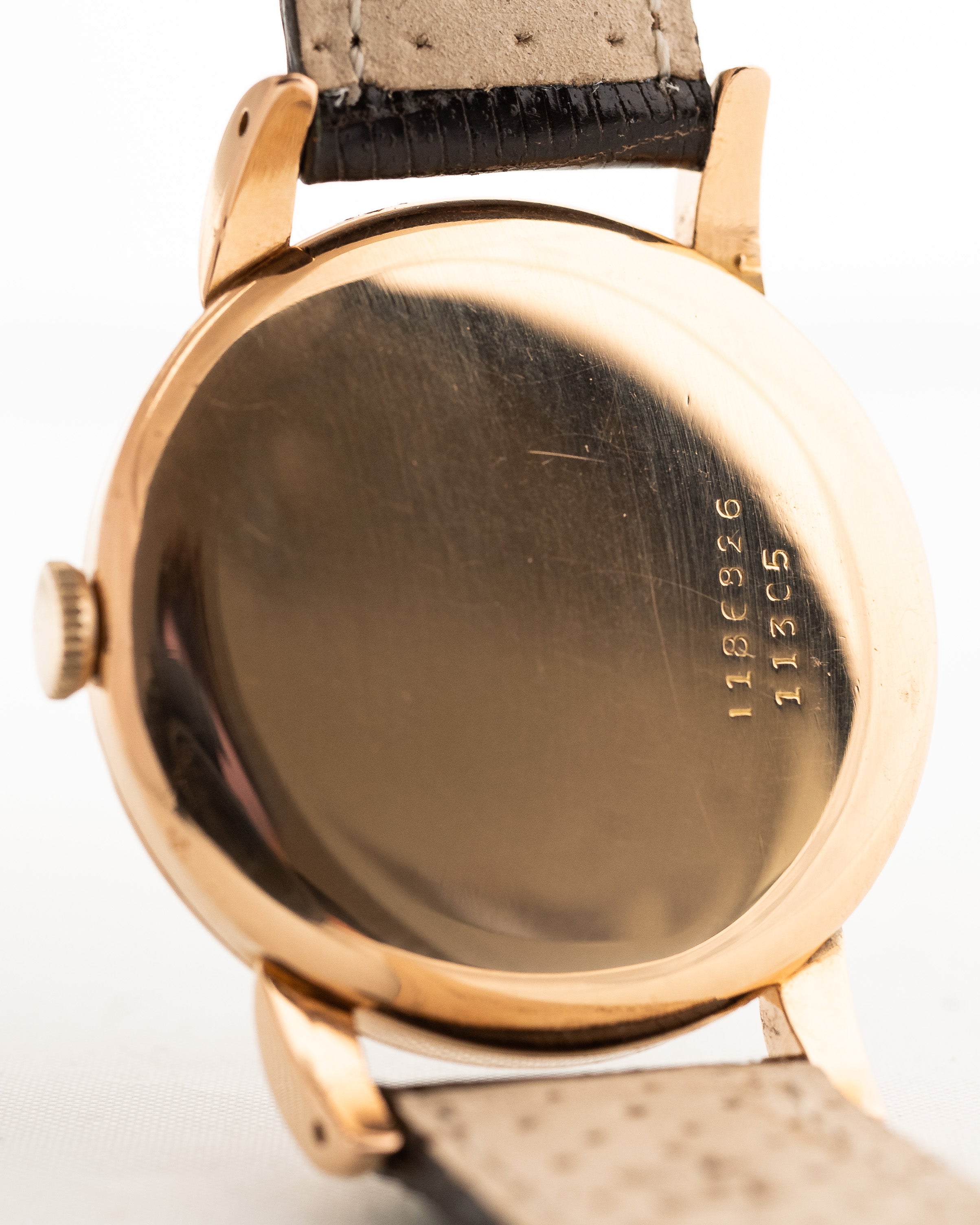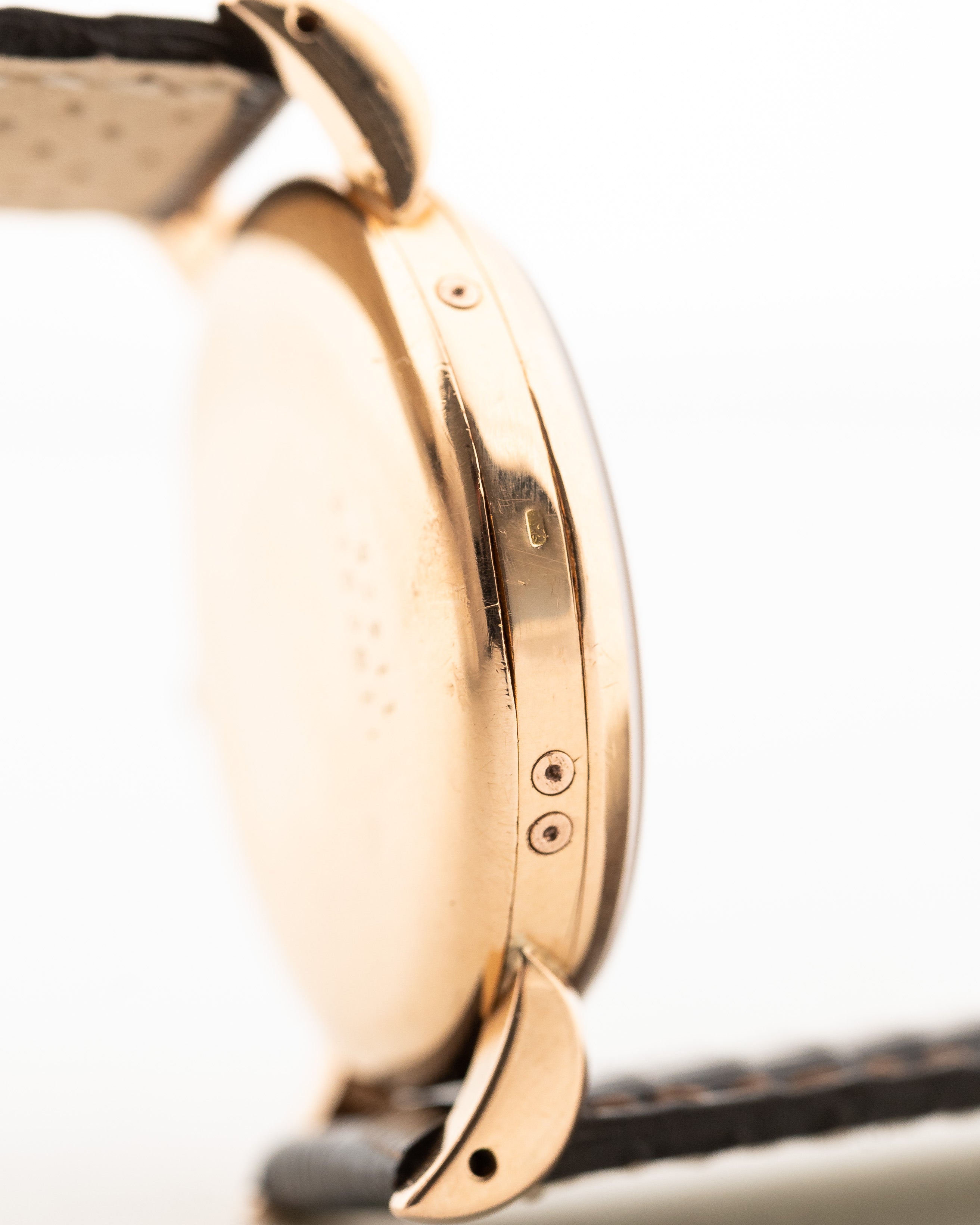 它的特色在於 34 mm 18K 玫瑰金錶殼搭配下翻式 Bombé 錶耳,這種原始狀態的錶殼非常難得。