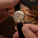 這款極其罕見的江詩丹頓1940年代禮服腕錶,堪稱瑞士製錶工藝的黃金時代典範。錶殼由Ed. Wenger SA精製,採用比例優美的35毫米18K黃金材質,將精緻幾何線條與腕間低調存在感完美融合。