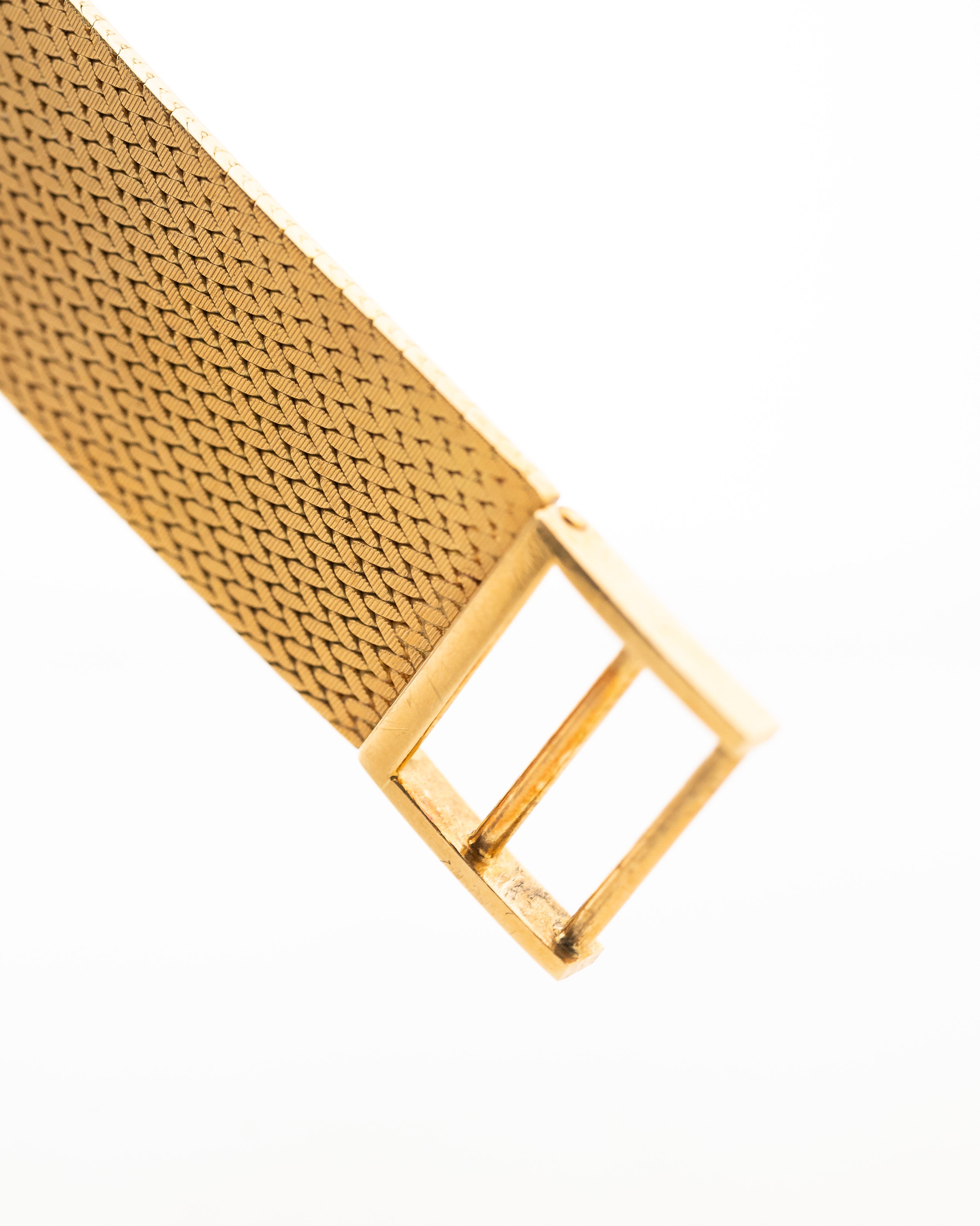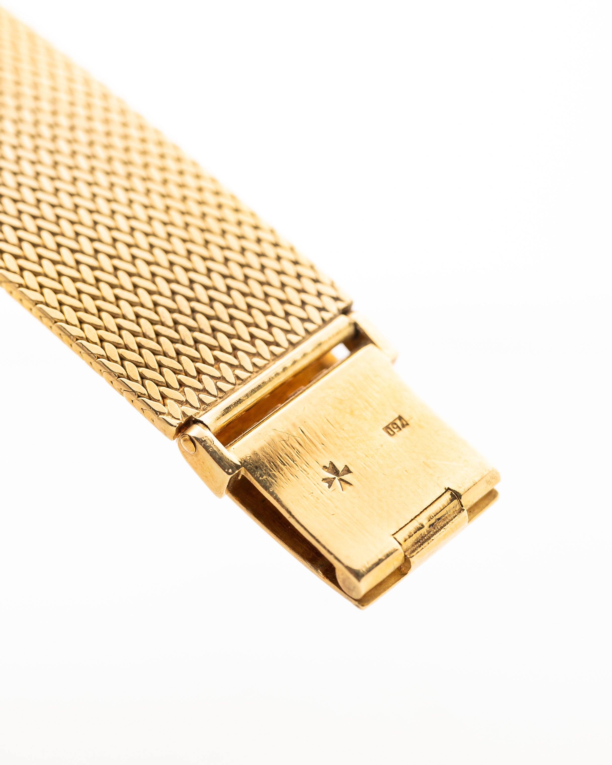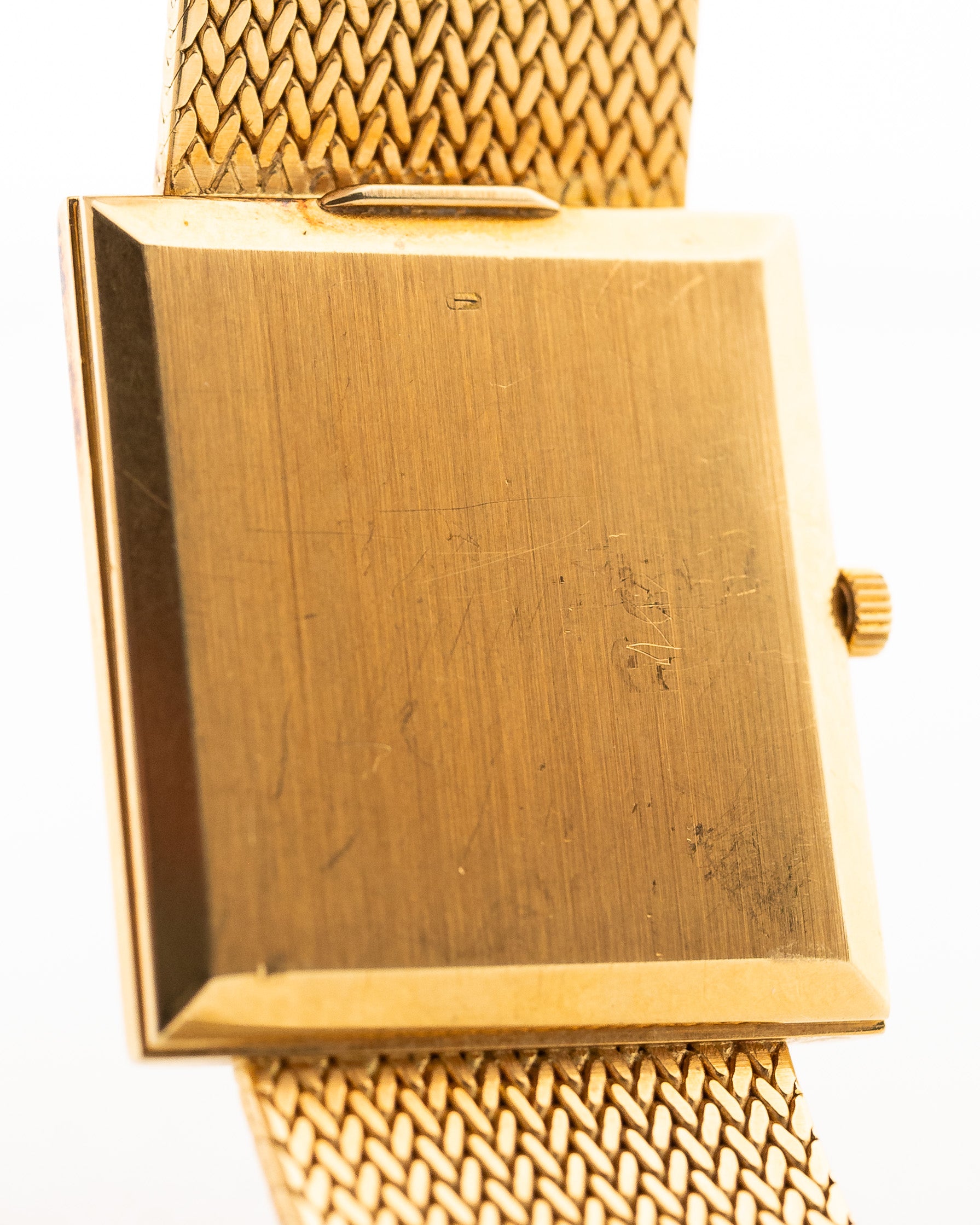 這是一款精美的 18K 黃金江詩丹頓 Tank 正裝腕錶,來自 1970 年代,搭配令人驚艷的 18K 實心黃金編織錶帶。
