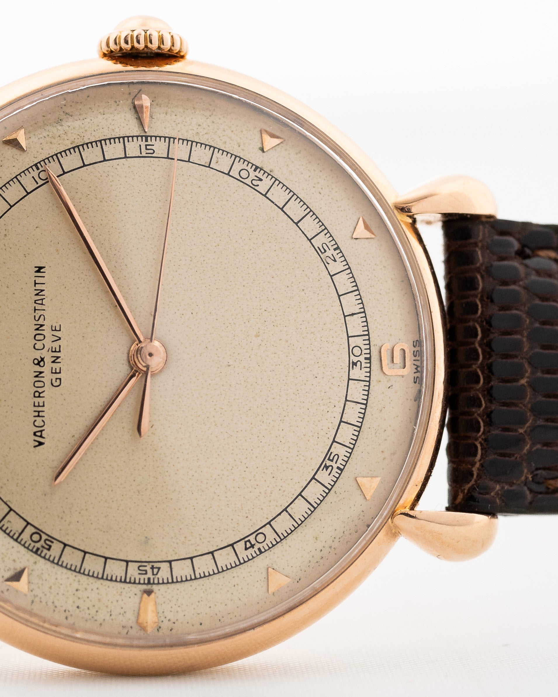 這款特別的作品以出色的錶盤狀況和堅固的 18K 玫瑰金錶殼而著稱。
